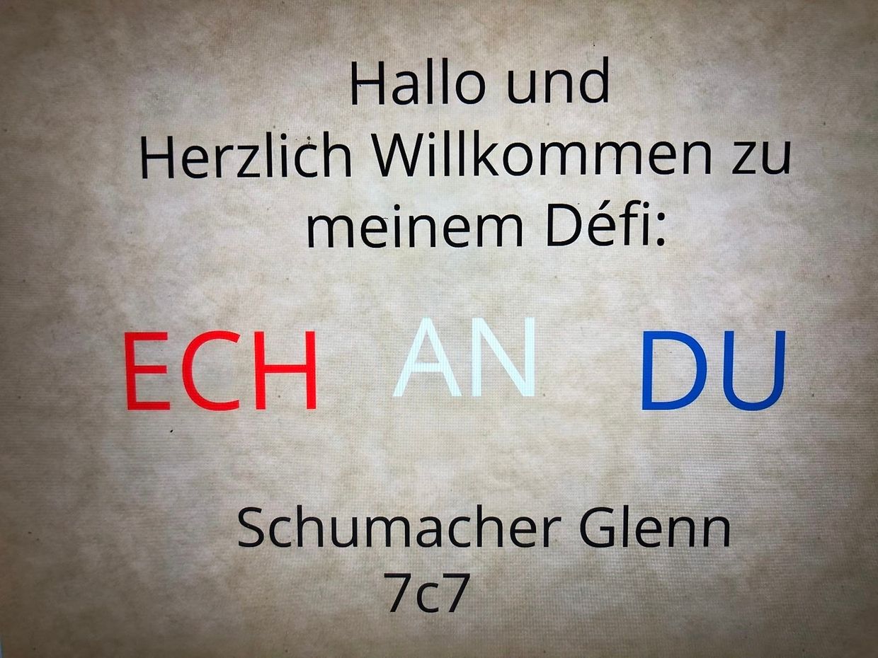 De Glenn, Bouf vum Tom Schumacher huet virun 2 Joer an der Schoul Aline Mayrisch e Défi gemach wou hien 1000 Fläschen Pinot Gris selwer produzeiert huet. De Gewenn vun desem selwer gemachte Projet, haalt iech un, 4000€, huet hie bei enger feierlecher Scheck Iwerreschung an der Domaine Viticole Schumacher un Special Olympics Letzebuerg iwerreescht