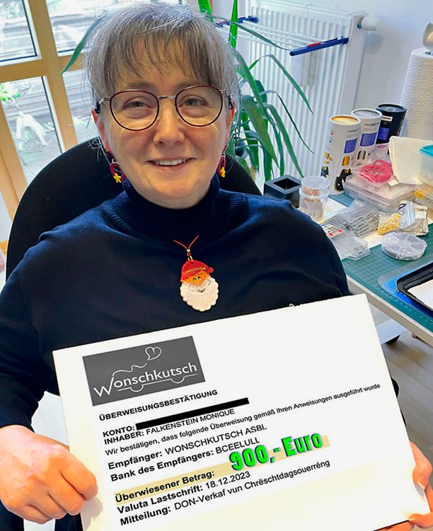 Wormeldingen Don un "Wonschkutsch asbl" Georges Zwickenpflug Veröffentlicht am Samstag, 23. Dezember 2023 um 16:51 Wormeldingen, Luxemburg Soën Alleguerten Villmols Merci déi dë Projet ënnerstëtzt hun. Duerch de Verkaaf vun Chrëschtdagsouerréng sin 900 euro ob de Compte vun der "Wonschkutsch asbl" gangen. Dieser Beitrag ist Teil einer mywort-Mission: Adventszeit Unpassenden Inhalt angeben Weitere Neuigkeiten von Georges Zwickenpflug > Bilderrätsel 21.09.23 Wormeldingen Kleng awer oho 08.09.21 Wormeldingen … och am Reen 08.09.21 Wormeldingen Emmer rëm schein 08.09.21 Wormeldingen Summer ob der Terrass, och heiheem ass et schéin! 02.07.20 Wormeldingen