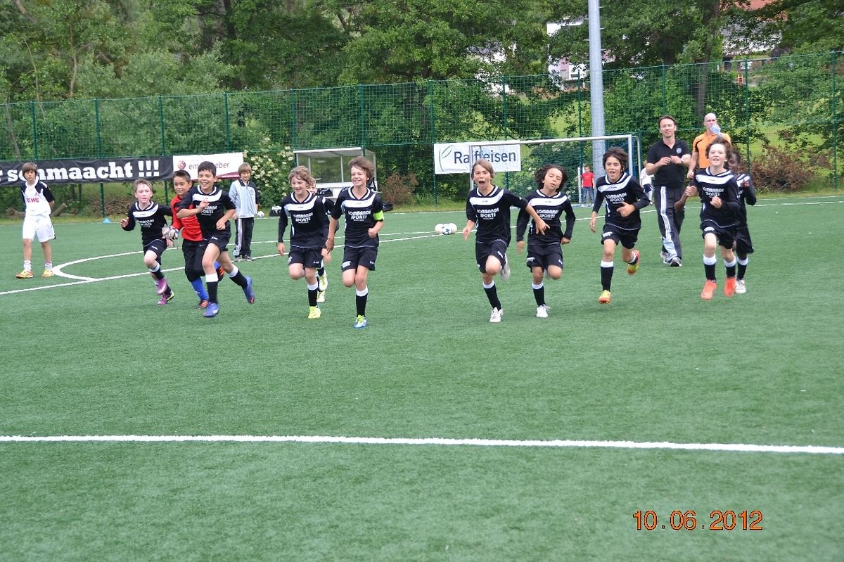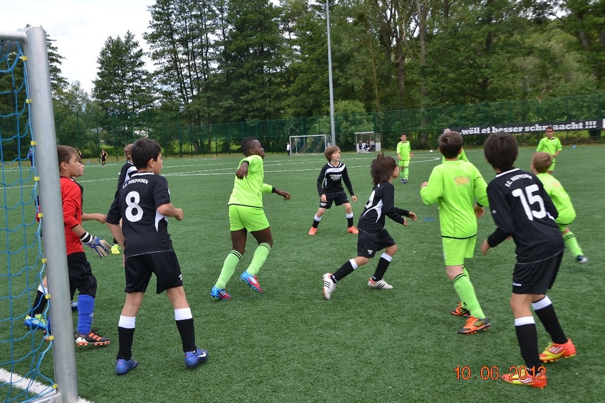 An der zweeter Halschent huet den Trainer seng Equipe eemol ganz nei opgestallt an sou sengen Bouwen d´Méiglechkeet ginn op där Positioun ze spillen wou si schonn ëmmer eemol wollten stoen. Den Nils an den Joshua am Mëttelfeld, den Fränz lenks Mëtt, den Eric riets Mëtt, hannen lenks den Louis/Brice, hannen riets den Raphael/Amiel, hannen Mëtt den Lucas,den Ivo an den Stuerm just eisen Goalkeeper Eric ass op senger Positioun bliwwen. Mee och an dëser ongewinnter Opstellung, an sécherlech gedroen vun deenen villen Supporter déi och op Mammendag rondrëm den Terrain stoungen, sinn nach weider 5 Goaler gefall déi een op den Kont vum Eric, Nils, Amiel an zweemol Ivo konnt verbuchen. Alles an allem war et een fairen Match och wann no engem haarden Zweekampf een Zant vum Kapitän Nils huet missen vum Terrain gedroe ginn. Dess Kéier haat den Trainer och 3 Pupilles (Fränz, Brice, Louis) mat op den Match geholl, an et huet een een klengen Virgeschmaach op nächst Joer kritt, wou dess Bouwen ganz sécher wäerten vir sou munch Victoire suergen.