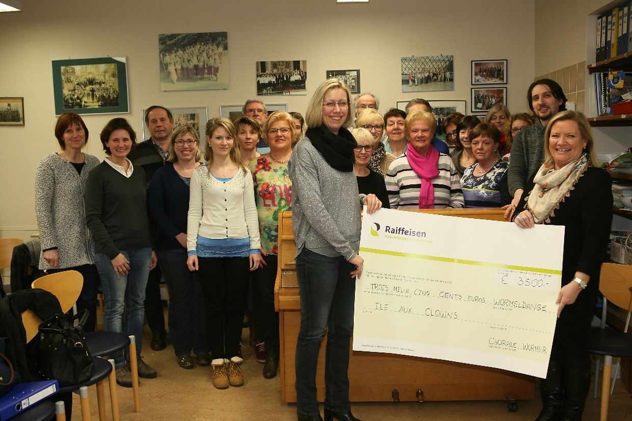 Gëschter Owend huet de Wormer Gesang, am Kader vun enger klénger Feier, der Mme Joëlle Golinski, Coordinatrice vun der Associatioun Île aux clowns e Scheck iwwer