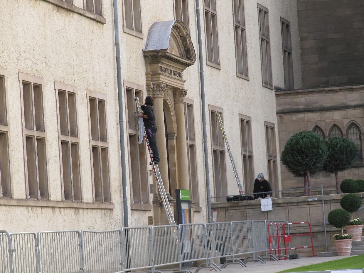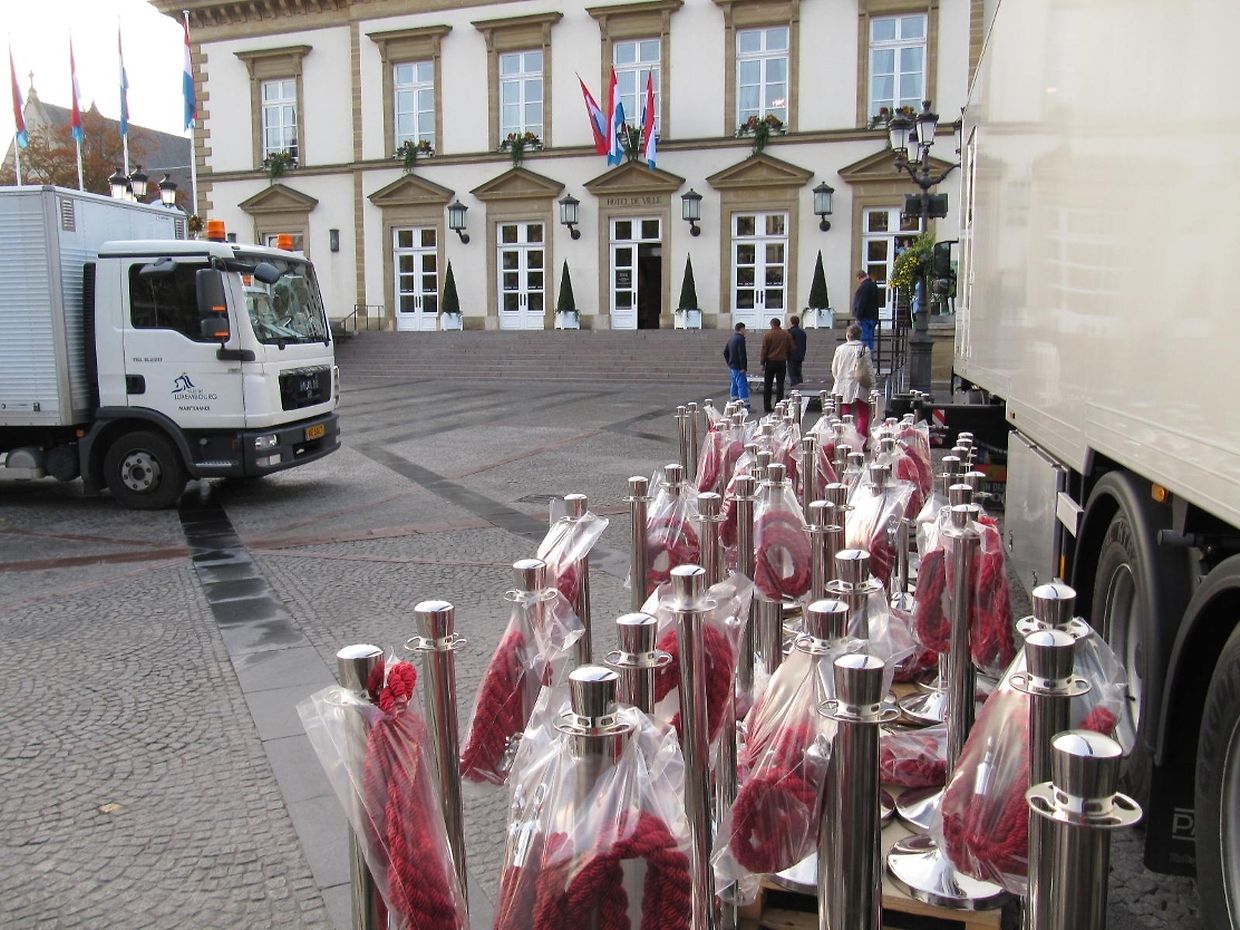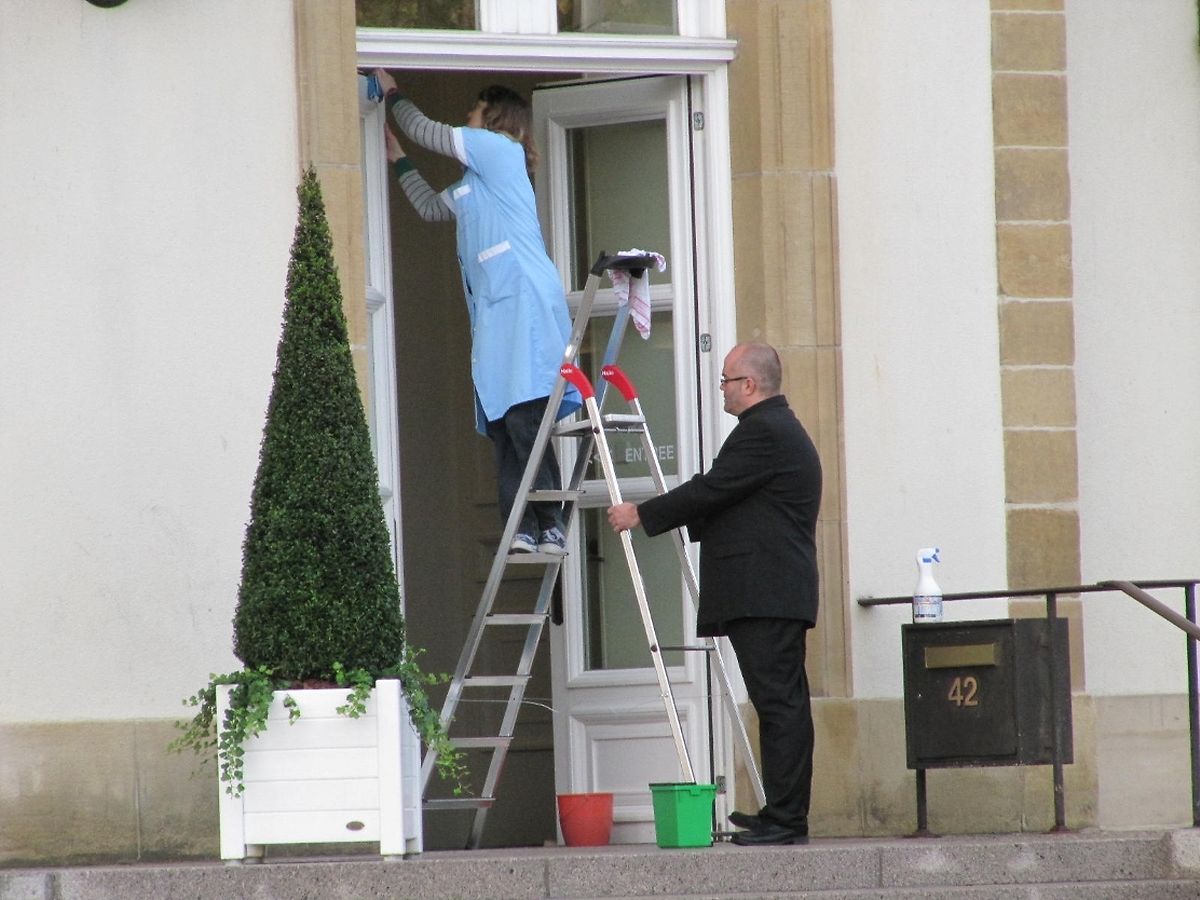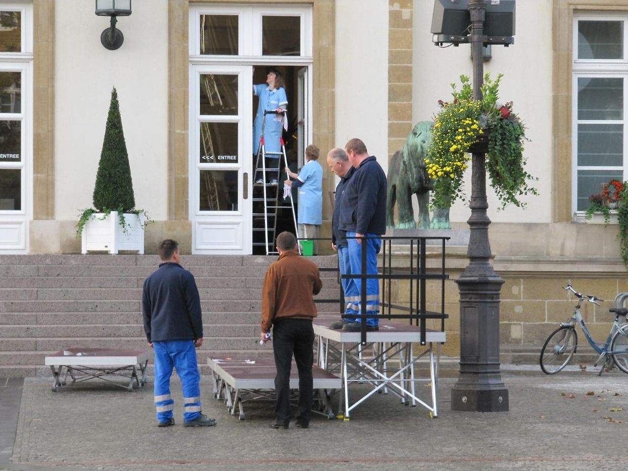 Heute Morgen wurden noch die letzten Fenster geputzt, Fahnen angebracht und Absperrkordeln aufgestellt. Um 15.30 werden Guillaume und Stéphanie sich bei der standesamtlichen Trauung in der Gemeinde das Ja-Wort geben