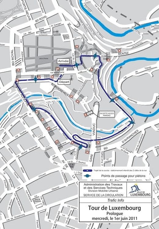 Dans le cadre du prologue du Tour de Luxembourg, qui aura lieu ce soir, 1ier juin, autour du centre-ville, des modifications et autres interdictions de circulation seront mises en place dès la fin de l'après-midi à proximité et à l'intérieur du circuit qu'emprunteront les coureurs.