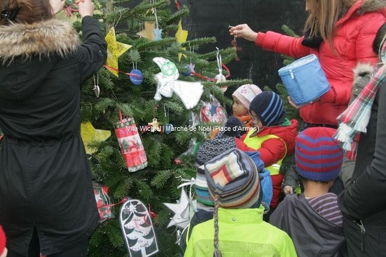 Quelques enfants de la Villa Wichtel ont bien décoré le Sapin de Noël « Villa Wichtel » avec des bricolages imaginés et réalisés par nos lutins.
