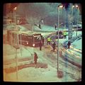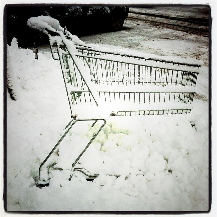 Den verschiedenen Gottheiten sei Dank, dass es hier nicht noch zu Schlimmerem gekommen ist. Es handelt sich auch nicht um einen Fall von Fahrerflucht, sondern nur um eine Fahrgestellaufgabe. Da war wohl ein emsiger Weihnachtseinkaufsbummler vom heftigen Schneetreiben so überrascht worden und musste kurzerhand dieses arme, jedoch schneeuntaugliche Transportgefährt stehen lassen um sich schnellstmöglich in die behagliche Sicherheit der warmen Stube zu begeben.