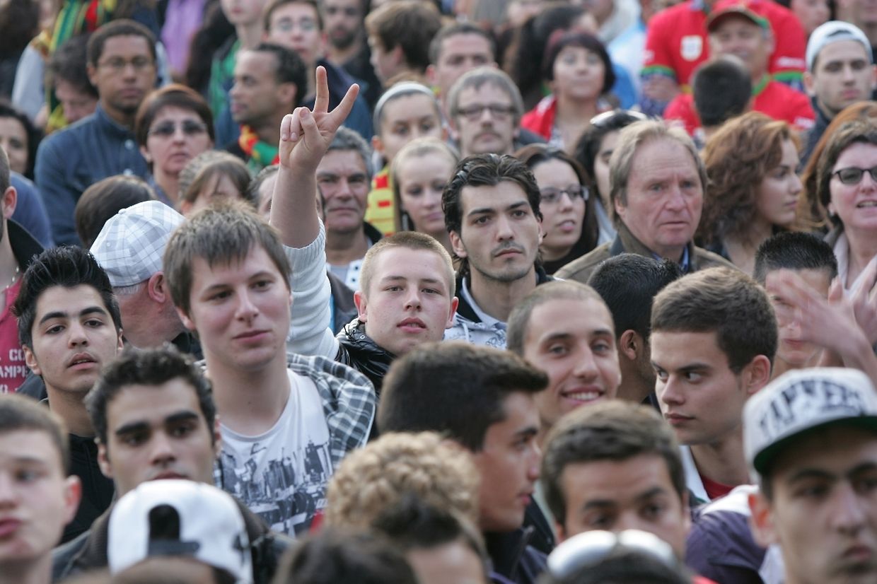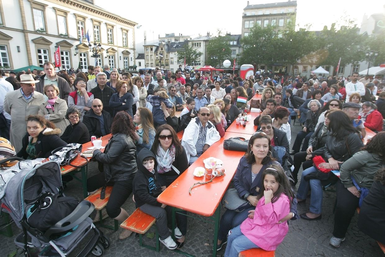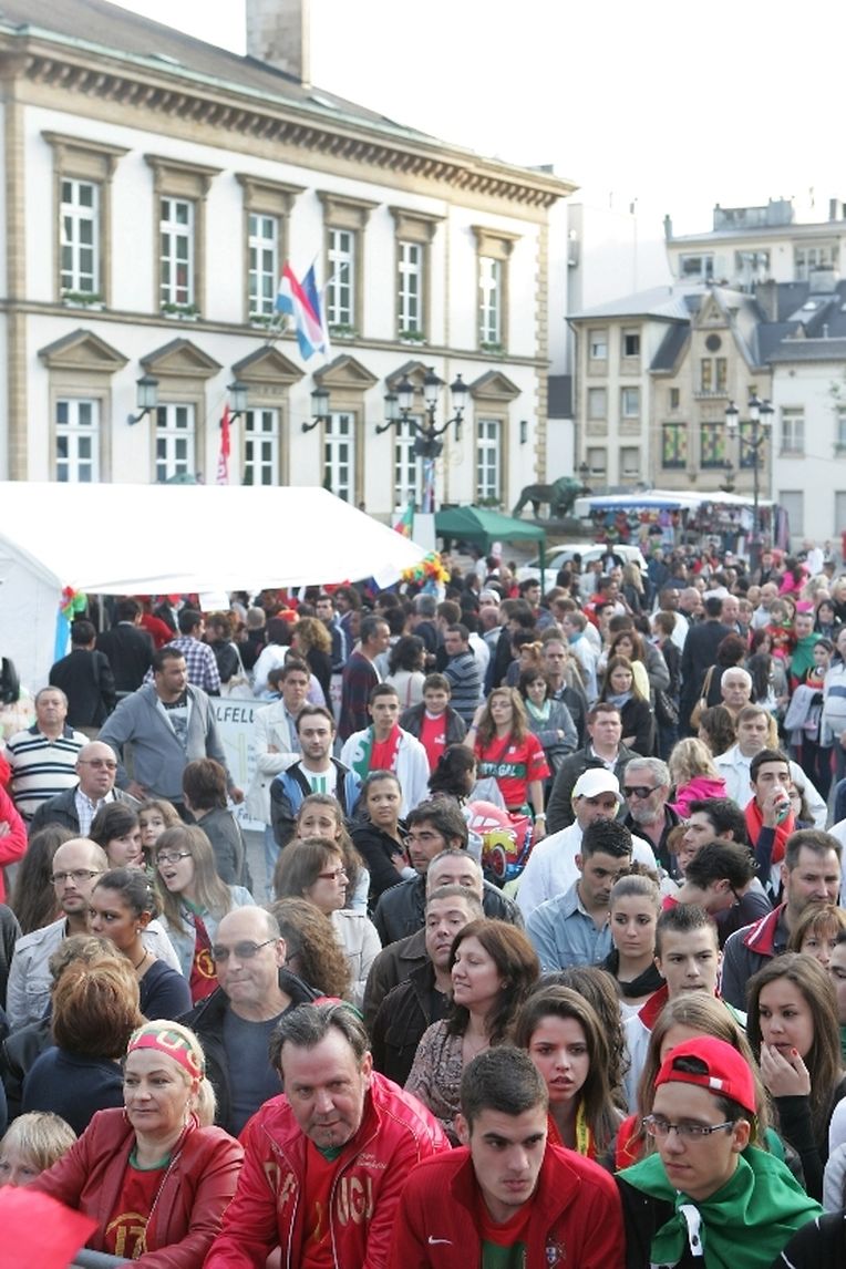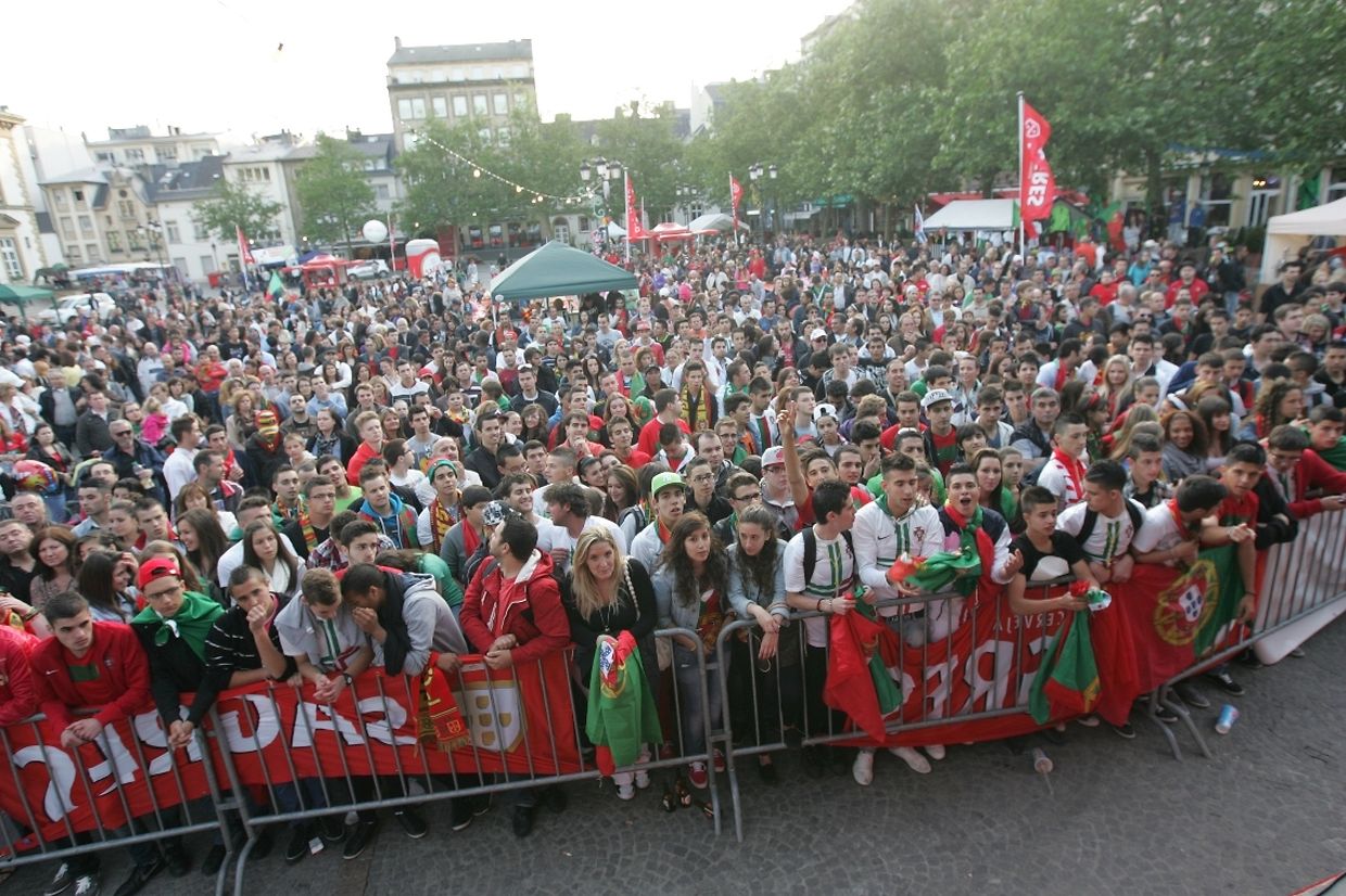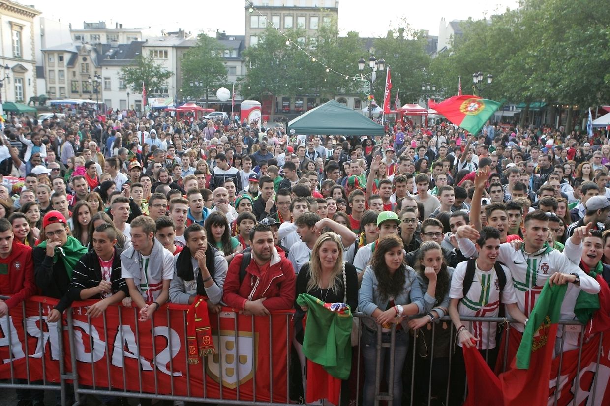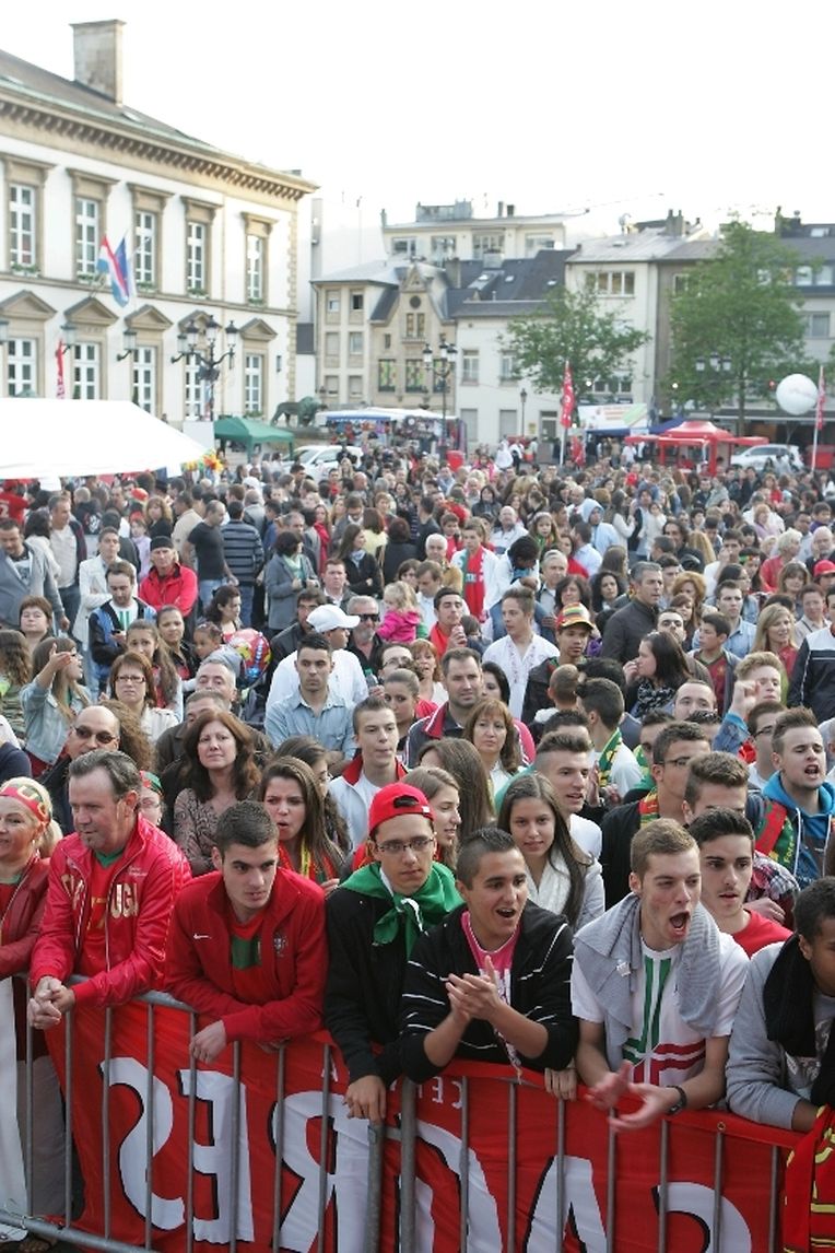 Auf dem "Knuedler" versammelten sich gestern einige hundert portugiesische Fans. Von Anhängern der deutschen Mannschaft war sehr wenig bis gar nichts zu sehen.