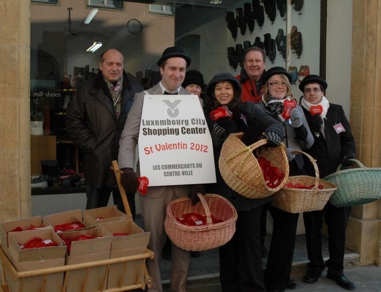 Getreu einer langjährigen Tradition verteilten die Mitglieder des „Luxembourg City Shopping Center“ – eine Vereinigung der Geschäftsleute, die seit 32 Jahren für Animation in der Oberstadt sorgt – am Samstagvormittag im Vorfeld des „Vältesdag“ ein kleines Präsent an die Passanten in den Geschäftsstraßen. Zu dieser beliebten Aktion erklärten Präsident René Kremer und Sekretär Nico Reisch, dass es sich diesmal um 4 000 Handwärmer in Form eines roten Herzens handelte, die sie den Kunden und Besuchern, die trotz eisiger Kälte den Weg zum Einkaufen in die Oberstadt fanden, anboten. Diese Geste ist hauptsächlich gedacht, um den zahlreichen Kunden für ihre Treue zum Zentrum zu danken. Im „Luxembourg City Shopping Center“ sei der Kunde König und werde stets zuvorkommend bedient, so die Verantwortlichen. (Text / Foto: Gaby Disewiscourt)