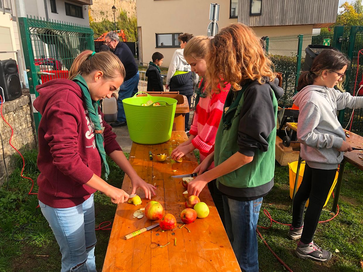 Et ass Hircht dobaussen, an domader huet och d'Appel Saison ugefangen. Dofir hunn sech ons Scouten an Exploreresou wei ons Tebo an onsen Comité, et sech net huelen geloss, fir ërem den leckeren hausgemachten Appeljus vun der HoGa ze pressen. Et ass schon eng kleng awer lecker Tradition ginn.