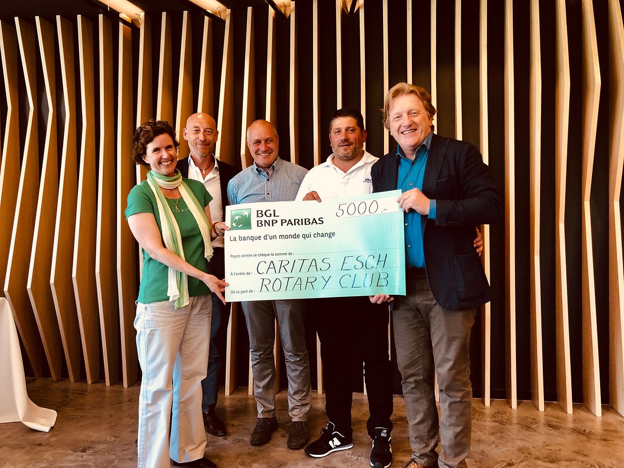 Lors d’une rencontre qui a eu lieu le 4 juin 2019, Monsieur Claude Wilwers, président 2018/19 du « Rotary Club Esch-sur-Alzette », a eu le plaisir de remettre un chèque aux mains de Caroline Theves en tant que représentante de Caritas Luxembourg. Madame Theves a vivement remercié tous les membres du « Rotary Club Esch-sur-Alzette » pour leur geste généreux et leur soutien régulier en faveur des initiatives de Caritas Luxembourg.