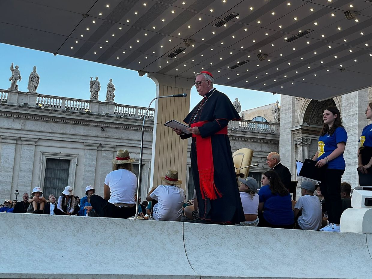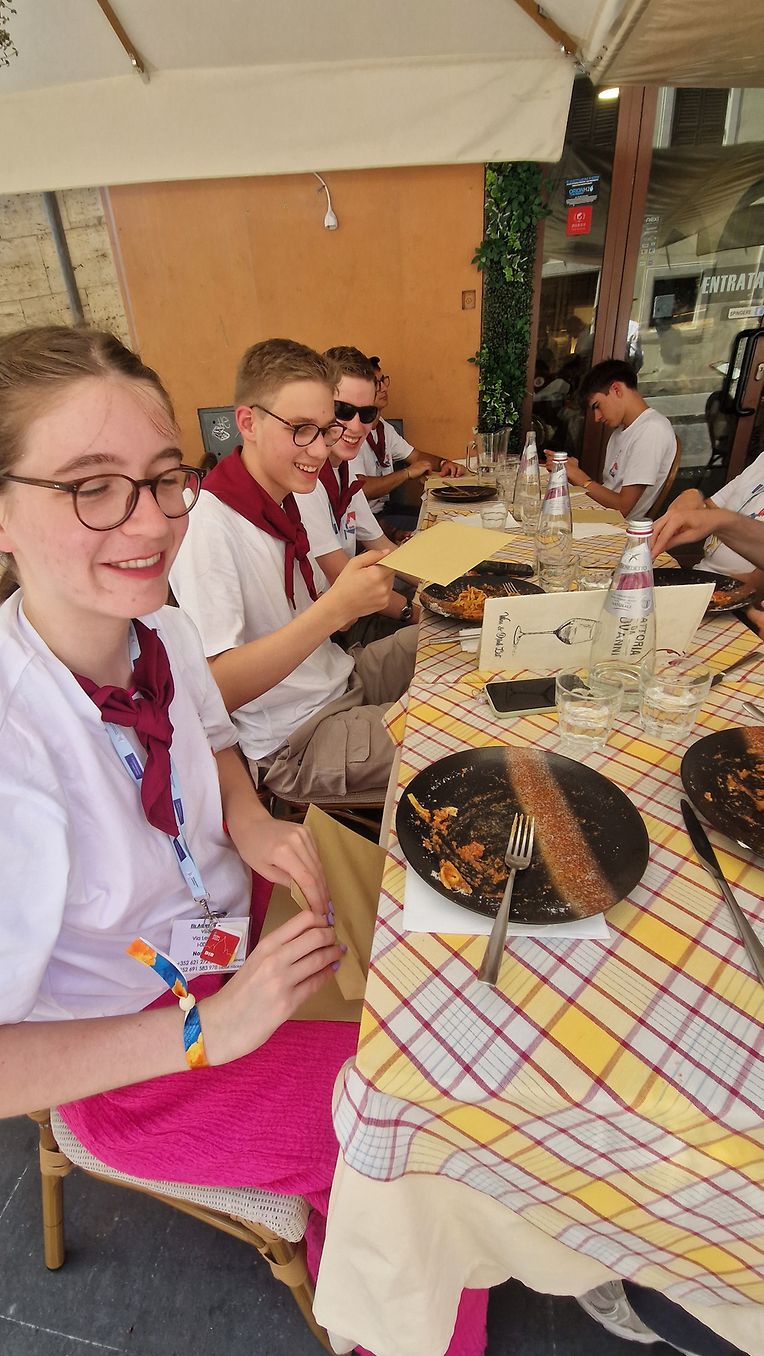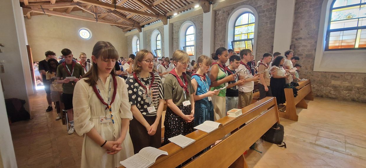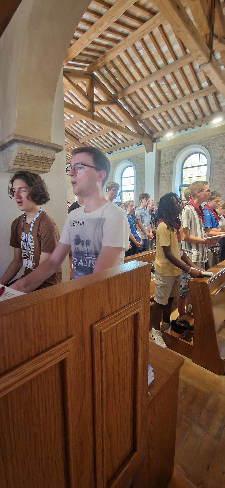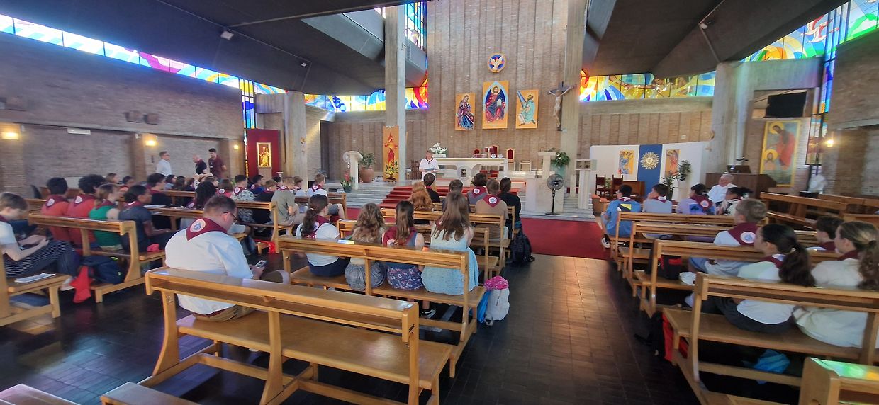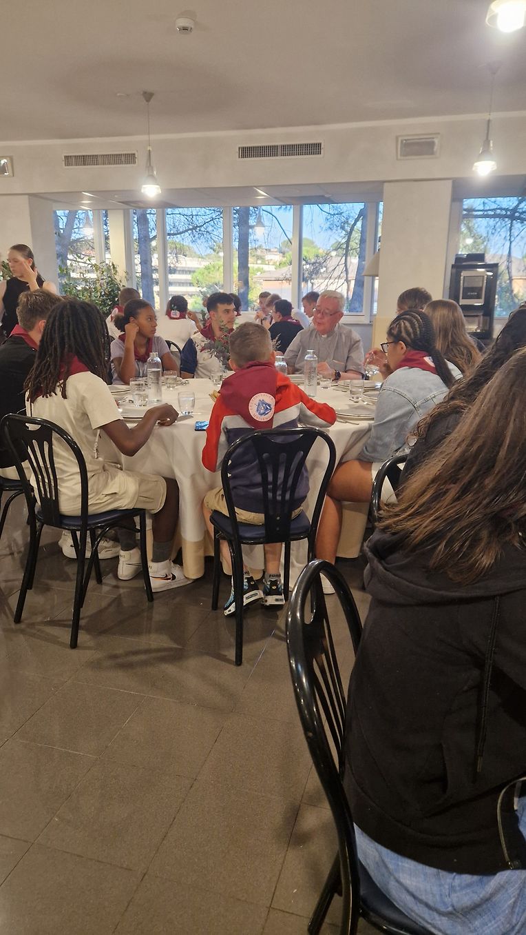 Den Highlight vun der Woch war de CIM [2] -Festival mat dem Owesgebiet mam Poopst. Mir alleguerten haten déi grouss Chance doru mat 50.000 anere Massendénger deelzehuelen. Dobäi waren eist Land an eis Sprooch ganz präsent. Ee vun eis huet virgesongen, eent vun eis gebiet. Eisen Äerzbëschof Jean-Claude Kardinol Hollerich huet d‘Owesgebiet geleet.[3]