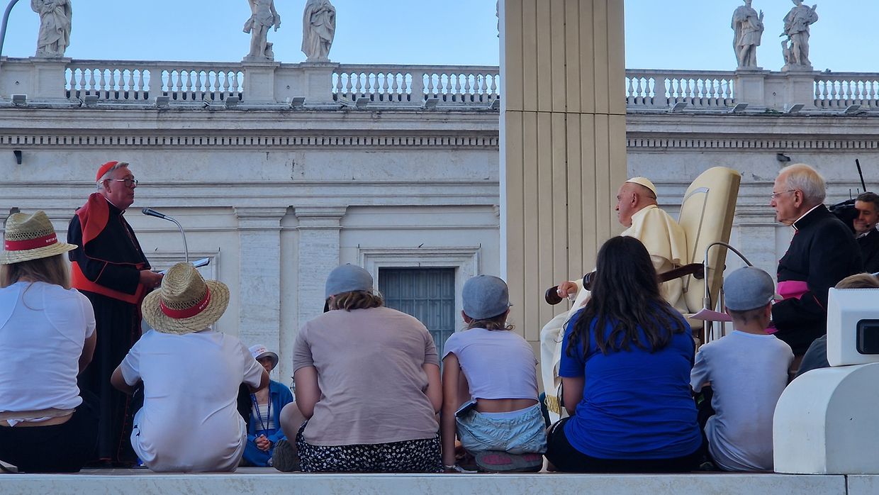 Et war ganz faarwefrou, all déi verschidde Gruppe mat hire Fändelen, T-Shirten, Kapen a Fändelen aus 20 Länner. An dann d‘Begeeschterung, wann de Poopst komm ass, dat gemeinsaamt Sangen a Bieden: jo, d‘Péitersplaz war schéin.