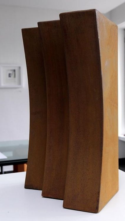Les pièces que nous propose Mediart dans sa nouvelle exposition sont certes de dimension modeste mais nous révèlent l'essence de la production de l'artiste belge. Les polyèdres en Corten libèrent leurs arêtes, déstructurent leurs formes. La rigueur géométrique et mathématique de tels solides est quant à elle contrebalancée par la sensualité du matériau. En effet, l'acier Corten avec son épiderme corrodé lui donnant l'allure d'un vieux cuir ou d'une terre cuite permettait à la sculptrice de jouer sur une partition anguleuse sans que ses œuvres soient ressenties comme agressives par le spectateur. Règnent également dans le travail de Nic Joosen de nombreux contrastes. L'équilibre et le déséquilibre se confrontent en harmonie, les pleins s'opposent aux vides et surtout la simplicité linéaire côtoie la complexité de certaines formes imbriquées. La sensation de pesanteur qui émane de quelques pièces solidement ancrées sur leur socle, s'estompe face à d'autres, dont la presque transparence et la légèreté nous émeuvent. Joosen savait à merveille intégrer sa sculpture à l'espace comme à la nature et l'emplir de connotations spirituelles et méditatives.