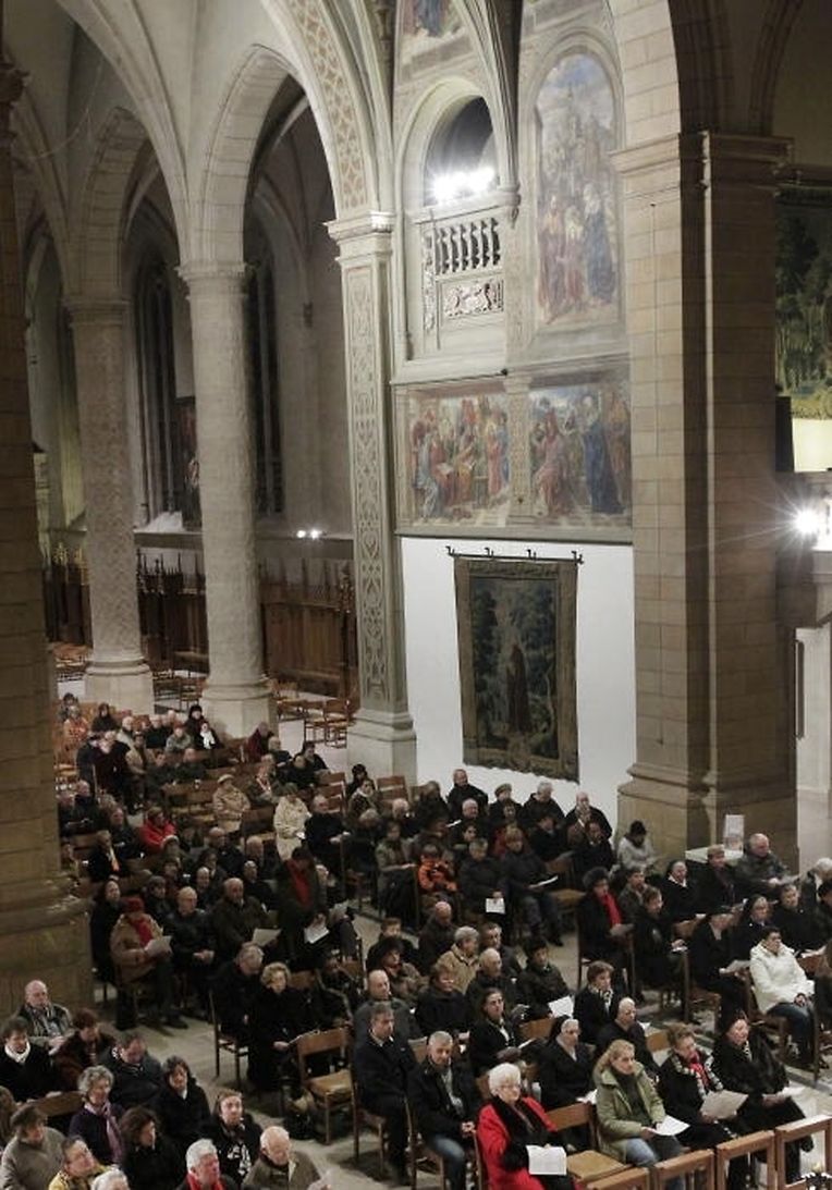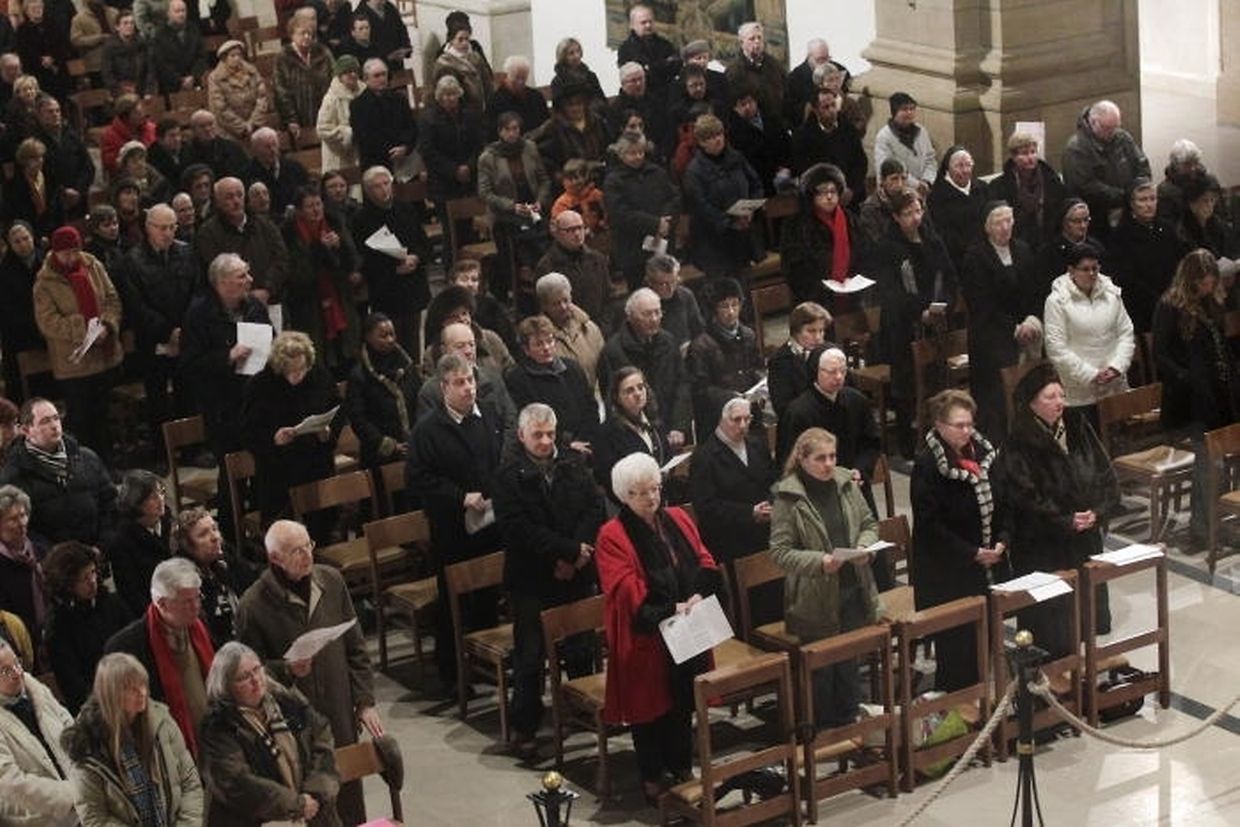 Nach der Eucharistiefeier, der Mgr. Fernand Franck vorstand, umgeben von seinen geistlichen Mitbrüdern, Generalvikar Mathias Schiltz, Dompfarrer Henri Hamus, Ehrendomherr Georges Vuillermoz, den Domherren Georges Hellinghausen, Joseph Néro und Raymond Streweler, Bischofsvikar Erny Gillen, Ehrendechant Ferdy Fischer, Abbé Delfim Pires, Aumônier der portugiesischen Mission, Abbé Bart Coenegrachts aus dem Bistum Hasselt (B), Abbé Nico Schartz, geistlicher Begleiter der Pax-Christi-Bewegung, der die Volksgesänge leitete, sowie Diakon Michel Michaely, derweil Domorganist Paul Breisch an der klassischen Orgel der Kathedrale fungierte, bedankte sich der Erzbischof bei der Pax-Christi-Bewegung für ihren unermüdlichen Einsatz für den Frieden das ganze Jahr über.