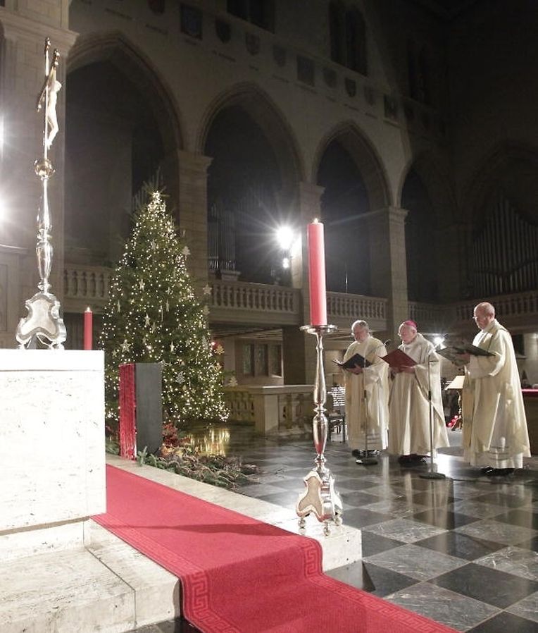 Zu Beginn der erhabenen Feier lud Erzbischof Mgr. Fernand Franck die Versammelten ein, in einem Moment von Stille und Besinnung dem einen treuen Gott, der uns durch das verflossene Jahr begleitet hat, für seine Hilfe und Gnade zu danken, ihn um Verzeihung zu bitten für den Mangel an Barmherzigkeit, den wir unseren Mitmenschen entgegengebracht haben, und uns vom Licht des Friedens, das vom Kind in der Krippe von Bethlehem ausgeht, umhüllen zu lassen.