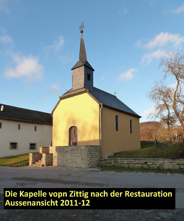 Die Renovierungs- und Restaurationsarbeiten der Kapelle wurden in den letzten Jahren unter Leitung der Gemeinde Bech und mit der finanziellen Unterstützung durch die Kirchenfabrik der Pfarrei Hemstal durchgeführt. Die Kapellevon Zittig ist im Besitz der Gemeinde Bech. (FSa)