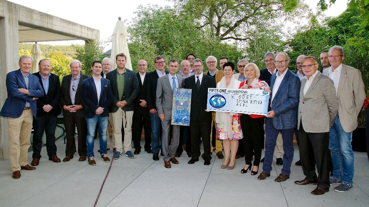 Bei Geleeënheet vum Riesling Open 2014 hat de Fifty-One Club Moselle op e gudde Maufel mat engem Patt Miseler an d'Caves Pundel-Err zu Wormer agelueden. De Service à la Communauté vum Club hat deecidéiert, den Erléiss vun dëser Manifestatioun der Asbl Spina Bifida zoukommen ze loossen. Bei enger klenger Feier de 25.05.2015 konnt de President vum Fifty-One Musel, de Francis Hemmen, den Dammen Liz Hoffmann a Julie Keller vu Spina Bifida, e Chèque matt dem stolze Betrag vun 6051 € iwwerreechen. D'Vertriederinnen vun der Asbl hunn uschléissend iwwer déi sëllege Probleemer geschwat, mat deenen d'Famillen vun de betraffene Kanner confrontéiert sinn, a wéi d'Spend agesat gëtt, fir hinnen e bëssen ze hëllefen.