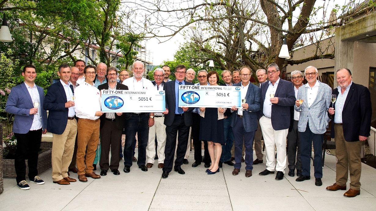Kürzlich überreichte Mill Reuter, President des Fifty-One-Musel, Schecks über jeweils 5051 € an Fondation Cancer, vertreten durch Direktorin Lucienne Thommes und Protransplat, vertreten durch Präsident Jos Bourg und Schatzmeister Fernand Kneip.