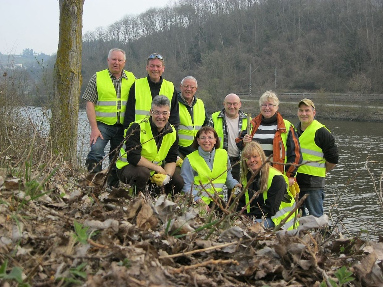 Unser Bild zeigt einen Teil der Teilnehmer der Aktion an der Mosel. Die Jugendkommission der FLPS hatte nach Ahn geladen, wo im Centre Culturel die Sektoren aufgeteilt die Teilnehmer mit Warnwesten, gesponsort durch LuxGsm versorgt wurden.