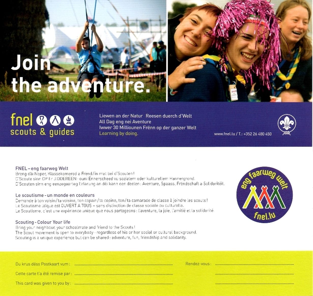 Den 01.10.2011 ab 10h00 fänken bei de Munnerfer Mais FNEL Scouten a Guiden d'Aktivitéiten erem un.