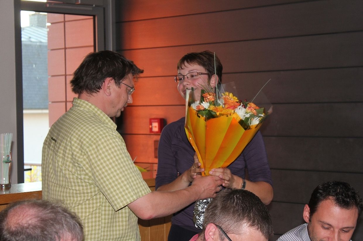 L’élu Jean Mangen apporta les bons voeux de la part de l’Administration Communale. Il souligna spécialement les efforts, et la réussite, de l’équipe féminine.