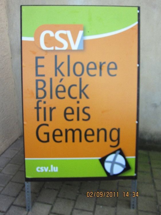 Aspelt D'Pannoen sin prëtt CSV-Sektioun Fréiseng Published on Friday, 2 September, 2011 at 14:51 An den nexten Deeg waerten déi verschidden Wahlpannoen lanescht d'Stroossen opgestalt gin. D'Fréisenger CSV Sektioun huet hir Pannoen faerdeg. Report inappropriate content More news by CSV-Sektioun Fréiseng > Generalversammlung vun der CSV Sektioun Gemeng Fréiseng 19/04/17 Hellange Ausdeelen vun eisem Wahlprogramm 24/09/11 Frisange