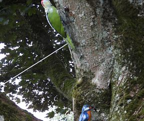 Een Äisvull an ee Grünspecht zesummen op engem Bam