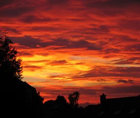 Sonnenënnergang am Hierscht zu Wenduine op der belscher Küst