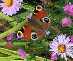 Tagpfauenauge op den Asteren