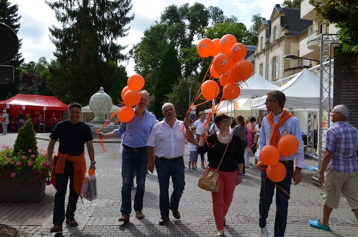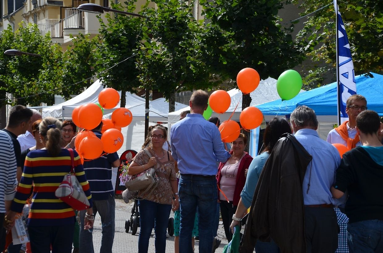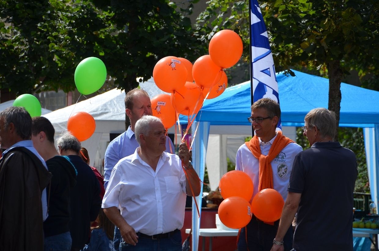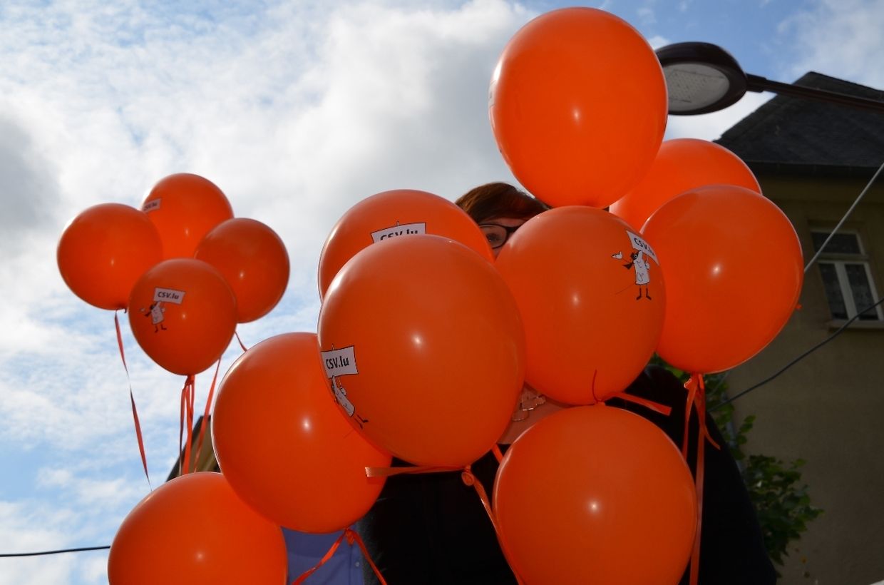Um Stand vun der lokaler CSV Sektioun konnt een an enger flotter Atmosphäre nët nëmmen e Patt drenken an e Maufel iessen mee och esouz munnech Gadget'en an d'Täsch stiechen a sech zu aktuellen Themen aus der lokaler an der nationaler Politik emfroën. Fir d'Kanner goufen et Loftballon'en an Gesiichtsmoolerei. Déi orange Faarf huet op dësem Dag nët nemmen e bëssen Summer an d'Spill bruecht, mee och léiwt Laachen op d'Gesiichter vu munnech Kanner an Erwuessener wéi d'Fotoen et beweisen :-)
