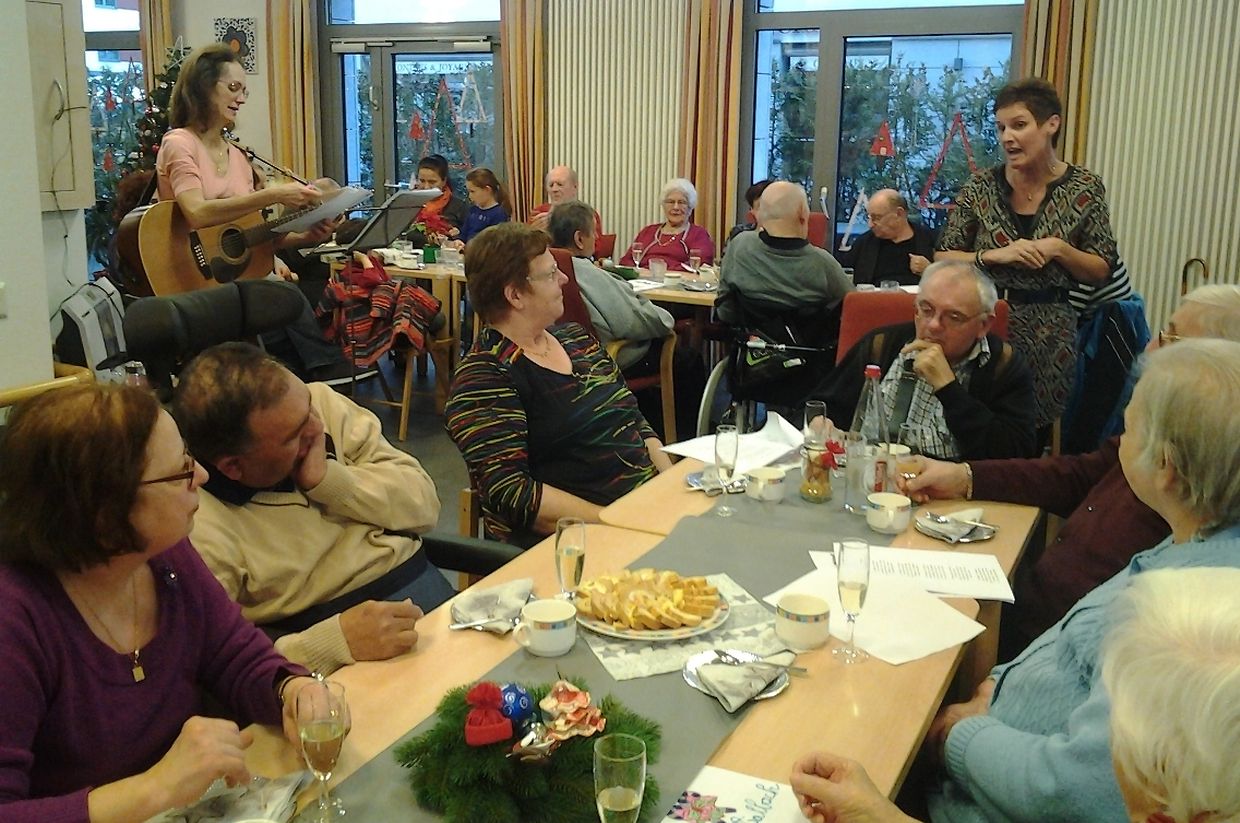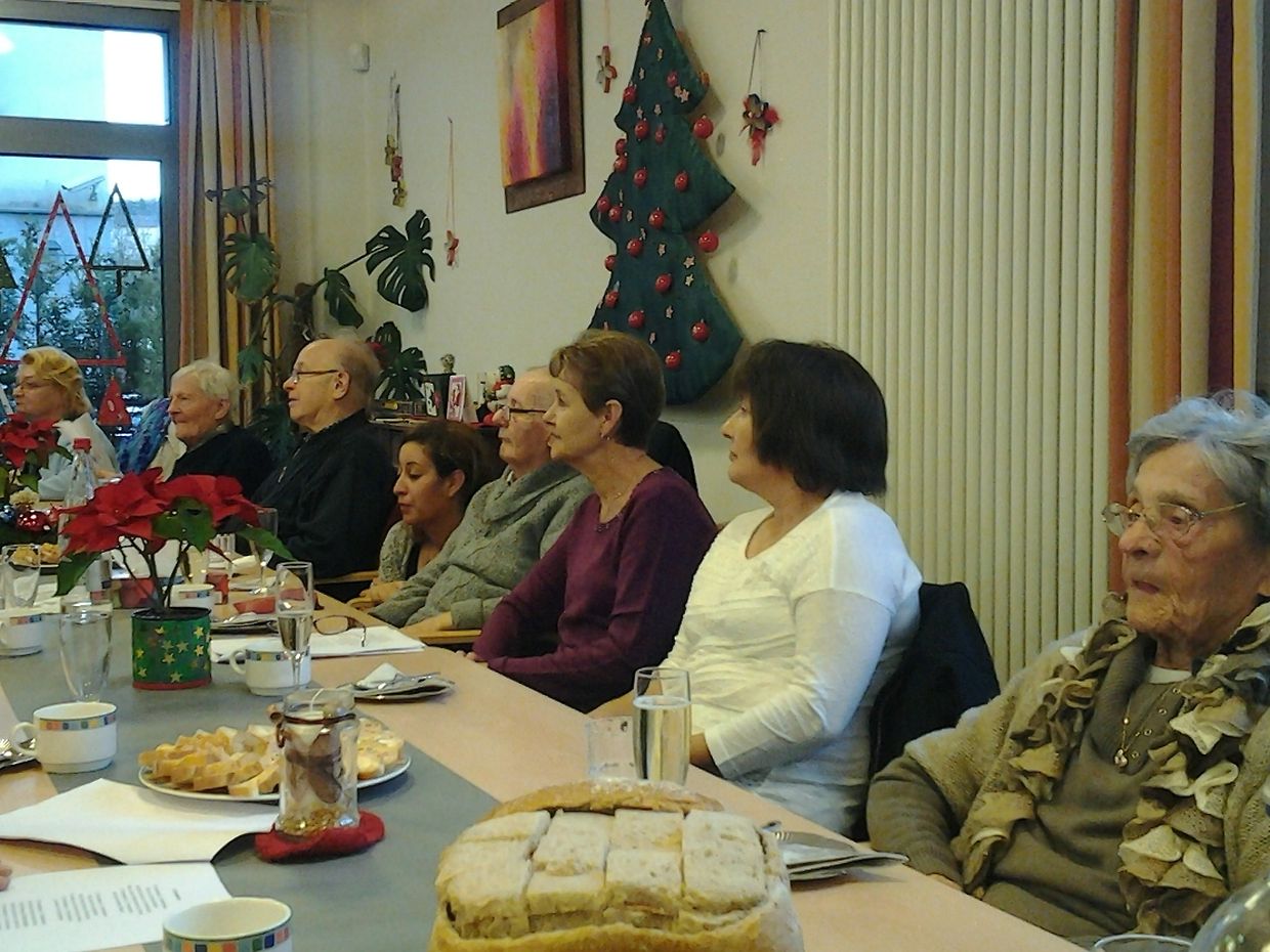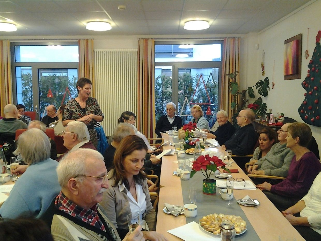 Im geschmückten Saal des "Foyer de jour Aalbach" in Mondorf trafen sich zahlreiche Mitglieder aus Mondorf und Umgebung mit ihren Angehörigen zu einer stimmungsvollen Weihnachtsfeier. Die schönsten und bekanntesten Weihnachtslieder wie u.a. Stille Nacht, Heilige Nacht sangen natürlich auch die Senioren gern, die von einer Gitarristin begleitet wurden. Das Personal trug Gedichte vor u. versorgte die Senioren und ihre Gäste bestens mit Getränk und Leckereien. Cathy HILGER, Zuständige für dieses Foyer, wünschte allen ein fröhliches Weihnachtsfest und ein gesundes neues Jahr und sprach ihren Mitarbeitern Dank und Anerkennung aus.