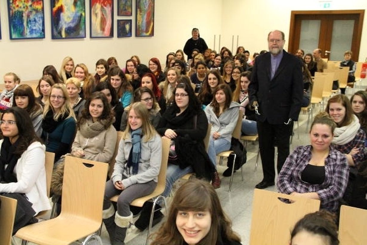 Heute trägt er zwei Unterarmprothesen, die in zwei Metallhaken enden. Bei seiner Rede sind diese Prothesen ständig in Bewegung und unterstreichen die lebhafte Sprache. Sein Vortrag war nicht nur für die 17- und 18-jährigen Schülerinnen außergewöhnlich. Stark beeindruckend war seine Beschreibung, wie er dieses schreckliche Erlebnis verarbeitete.