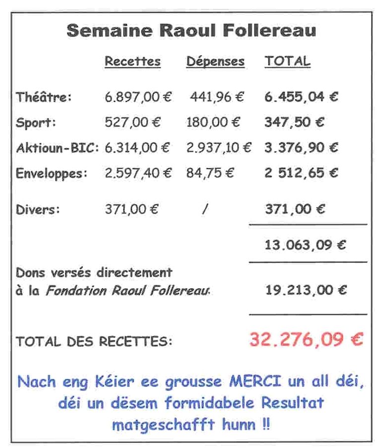 Im Rahmen der "Semaine Raoul Follereau", die dieses Jahr vom 23.Januar bis 4. Februar stattfand, organisierte die Privatschule Fieldgen Sportevente, Theaterabende und sammelte Geld durch weitere Spendenaktionen.