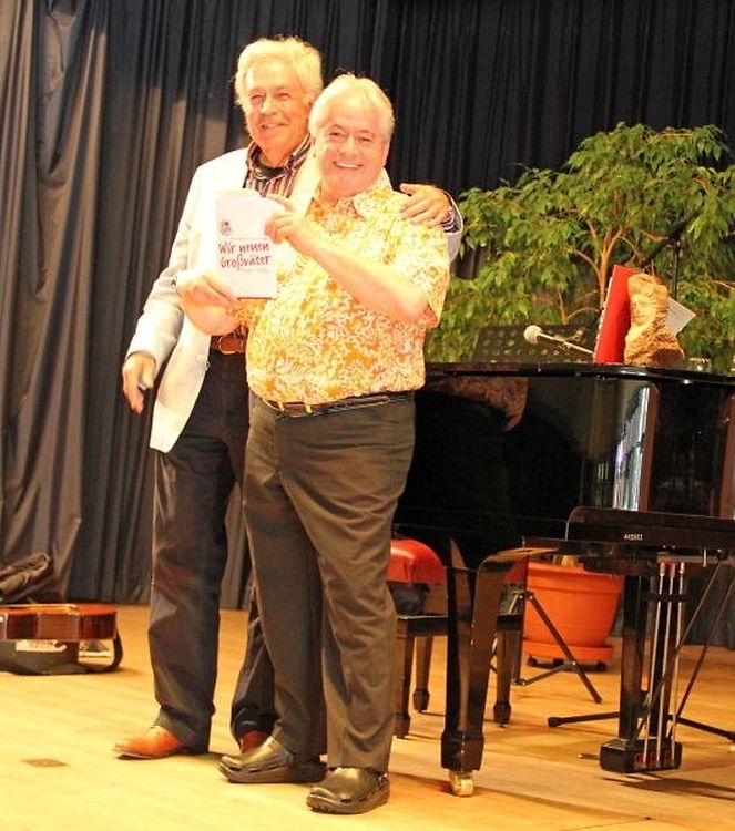 Heute allerdings haben die Kinder neue Großväter bekommen, toleranter, hilfsbereiter, eigenständiger und zugleich intensiver beteiligt. „Das Verhältnis zwischen Alt und Jung war noch nie so innig wie heute“, betont Rainer Holbe und erzählt aus seiner Jugendzeit nach dem Krieg, als er als Achtjähriger mangels Kinderlektüre im zerstörten Frankfurt Goethes Faust solange las bis er ihn auswendig wusste. Mit eigenen Kompositionen sorgte Metty Krings für die musikalische Begleitung.