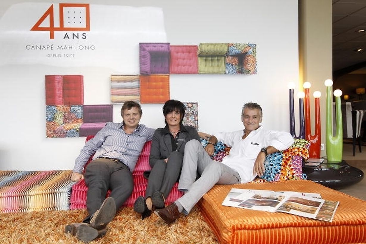 En pénétrant chez Roche Bobois, le visiteur entre dans un univers de couleurs, d'élégance et de formes harmonieuses. Les couleurs, le Mah Jong en a eu de nombreuses, en 40 ans! Jean-Paul Gaultier l'a rayé du motif de sa légendaire marinière. Kenzo l'a paré de fleurs gaies et romantiques, Missoni lui a aussi apporté sa griffe. Constitué de plusieurs coussins carrés posés à même le sol et superposables, assortis d'autres coussins faisant office de dossiers, ce canapé est modulable à souhait. «Les gens aiment ou détestent, mais le Mah Jong ne laisse personne indifférent», rapporte Thierry Lecomte, directeur commercial et décorateur de Roche Bobois à Bertrange. «Il représente la première vente du réseau Roche Bobois dans le monde». Le design de ce canapé chic et bohème, on le doit au designer allemand Hans Hopfer, en 1971, qui voulait un canapé pour vivre au ras du sol. Les canapés Mah Jong sont entièrement faits à la main, en Italie. «Tous les meubles Roche Bobois sont faits en Europe», précise Thierry Lecomte.