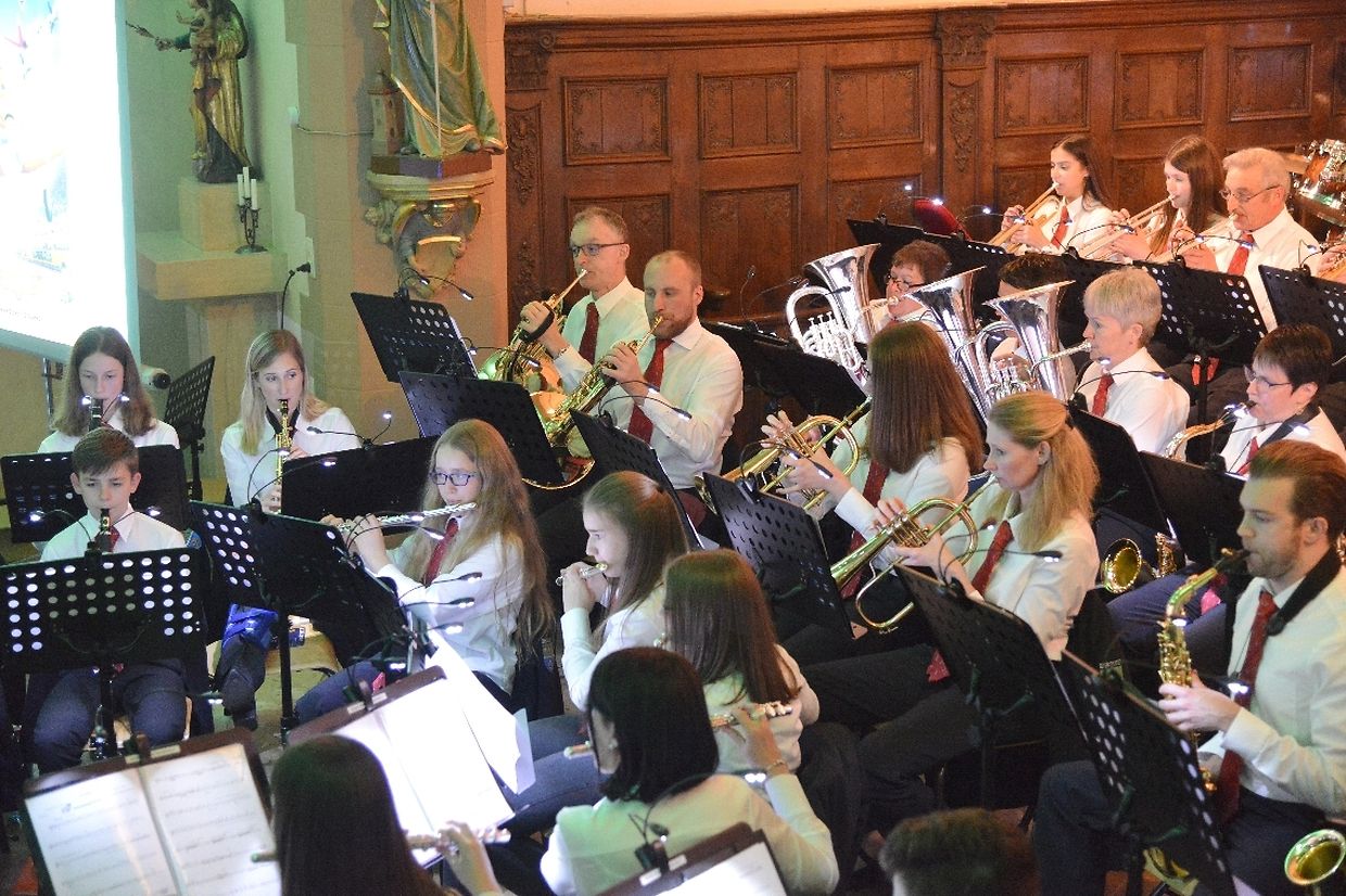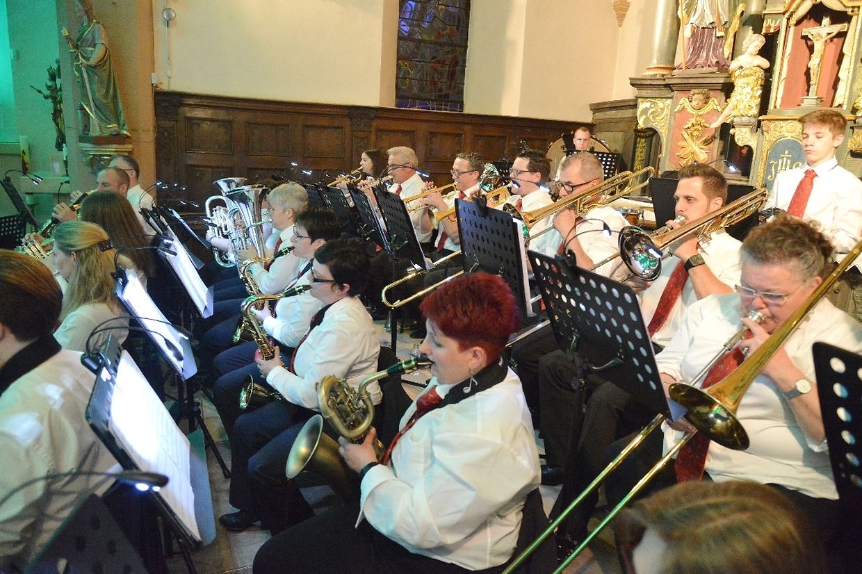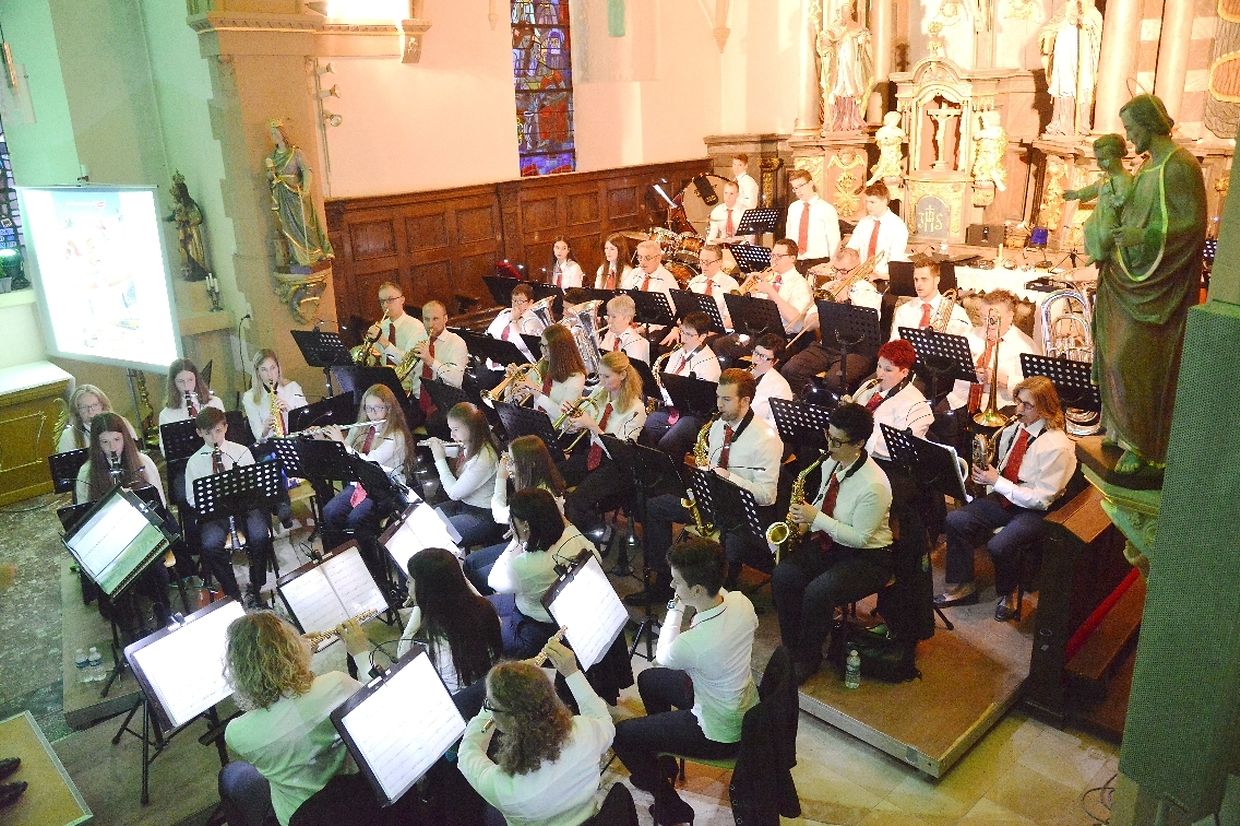 Bauschleiden: Auf eine musikalische Reise in die Welt der Filmmusik entführten die Musiker der „ Musik Gemeng Bauschelt“ neulich vor einer großen Besucherzahl in der Kirche von Bauschleiden. Die rund 35 Musikanten unter der Leitung von Serge Parisi boten nämlich eine rundweg gelungene Vorstellung ihres Könnens. Das diesjährige Galakonzert unter dem Thema „ Movies in Concert“ umfasste 13 Musikstücke von bekannten oder weniger bekannten Komponisten und Arrangeuren, die von Isabelle Neu auch bestens kommentiert wurden. Als festliche Einleitung kam die Eröffnungsmelodie der Olympischen Spiele 1988 in Seoul „the Olympic Spirit“ zur Aufführung. Weitere Highlights wie „Planes“ , „Dragon Heart“ , the Lego Movies bis hin bis zum letzten Musikstück „ Inspector Gadget“ vor der Pause. Nicht weniger anspruchsvoll folgte der zweite Teil mit Melodien wie „Games of Thrones“, „a Celtic Impression“, „ Zoom of Cosma“ und „ Mancini Spectacular“ . Nach denen vom Publikum geforderten Zugaben fiel es Präsident Arny Jakobs nicht schwer der gesamten Musikgesellschaft mit ihrem Chef samt Moderatorin, dem lokalen Supporterclub sowie allen Gönnern sein aufrichtiger Dank auszusprechen. Ganz erfreut zeigte sich der Vorsitzende über den Einsatz von verschiedenen neuen Musikanten ehe Bürgermeister René Daubenfeld das Engagement und die Ausdauer der „Bauschelter Musik“ besonders hervorstrich, die mit diesem Auftritt ein Galakonzert auf hoher Ebene einem dankbaren Publikum darzubieten wussten. (CR)(FOTOS: CHARLES REISER)