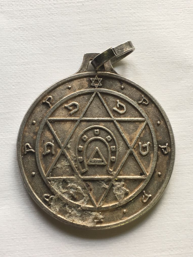 Zu bemerken bleibt noch, dass hier die traditionellen Zeichen der jüdischen Geheimlehre, Kabbala, mit dem altgermanischen Glückszeichen, dem Hufeisen, vermischt wurden.