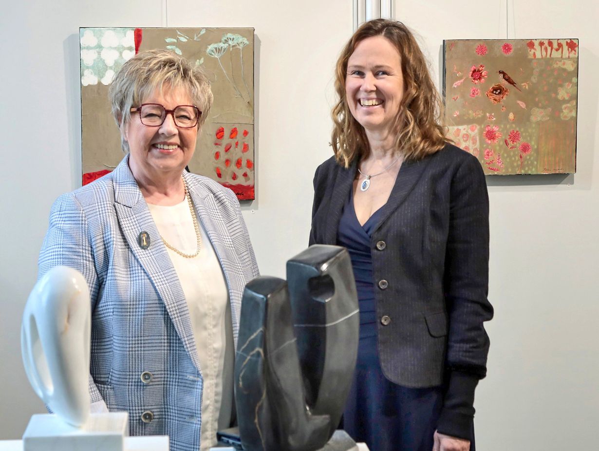 Beckerich. "De pierre et de papiers", so heißt die gemeinsame Ausstellung der Künstlerinnen Jaana Antola und Tilly Wengler, die noch einschließlich bis zum 21.Mai in der Millegalerie in Beckerich zu sehen ist. Jaana Antola arbeitet auf Papier und Leinwand und vereint Zartheit und Zerbrechlichkeit in einem fließenden Ausdruck wobei sie Farbenpaletten in Grün, Blau, Ocker und Rot verwendet. Radierungen sind ebenfalls ein wichtiger Bestandteil ihrer Kunst wobei Kaltnadel und Aquatinta die beiden wichtigsten Verfahren sind. Anders die Arbeitsweise der Künstlerin Tilly Wengler die Skulpturen aus Marmor hervorbringt. Es ist eine lange und mühselige Arbeit, das Werk aus einem Steinblock hervor zubringen wo es zunächst grob heraus gearebeitet werden muss, bis es dem Entwurf des Werkes gleichkommt. Erst danach kann die Kunstschaffende mit dem Feinschliff beginnen um die gewünschte Form zu gestalten.Die Künstlerin erschafft somit einfache und gleichzeitig komplexe Werke von berührender Sanftheit. Die Ausstellung der 38 Exponate ist von donnerstags bis sonntags von 14 bis 18 Uhr geöffnet. Termine außerhalb dieser Zeiten können unter der Nummer 621 25 29 79 vereinbart werden. (NiCa)