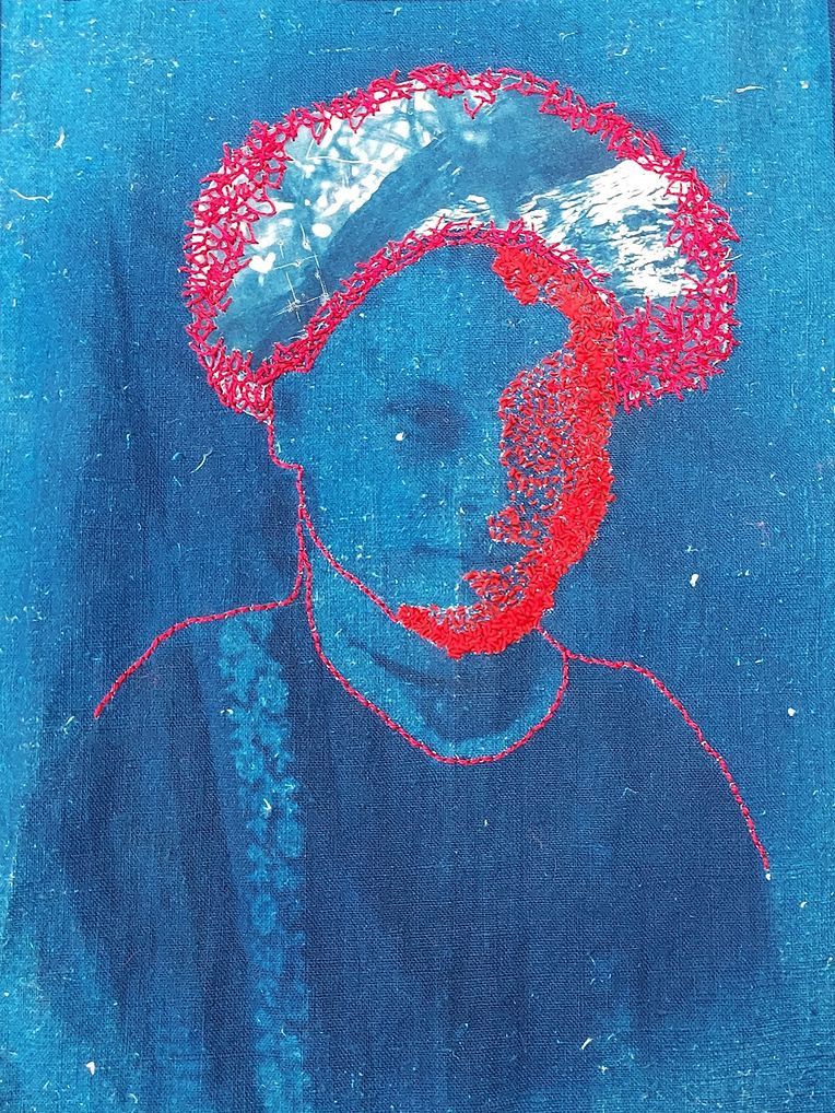 La photographie analogique étant un travail solitaire dans la chambre noire, un partage de ma pratique et de mes thèmes avec d’autres artistes s’avère toujours très enrichissant. Comme c’est le cas avec Reiny Rizzi qui réalise des broderies sur les matières de mes cyanotypes (papier, carton, textile et techniques mixtes). Ce travail en commun (comme pour le projet Taking roots), issu de deux pratiques artistiques complètement différentes, a démarré en 2021 pendant la période Covid. Nous travaillons sur un ou plusieurs sujets de façon plus ou moins indépendante. Une mise en commun régulière nous permet de ne pas perdre le fil rouge et de conserver nos approches personnelles.