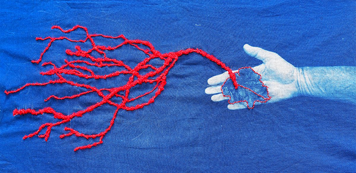 Reiny Rizzi retourne depuis quelques années à l’Art Textile, une pratique d’Art qu’elle a étudiée pendant les années 1990 à Londres. Dans son travail actuel, elle s’exprime surtout en utilisant la broderie main ou machine.