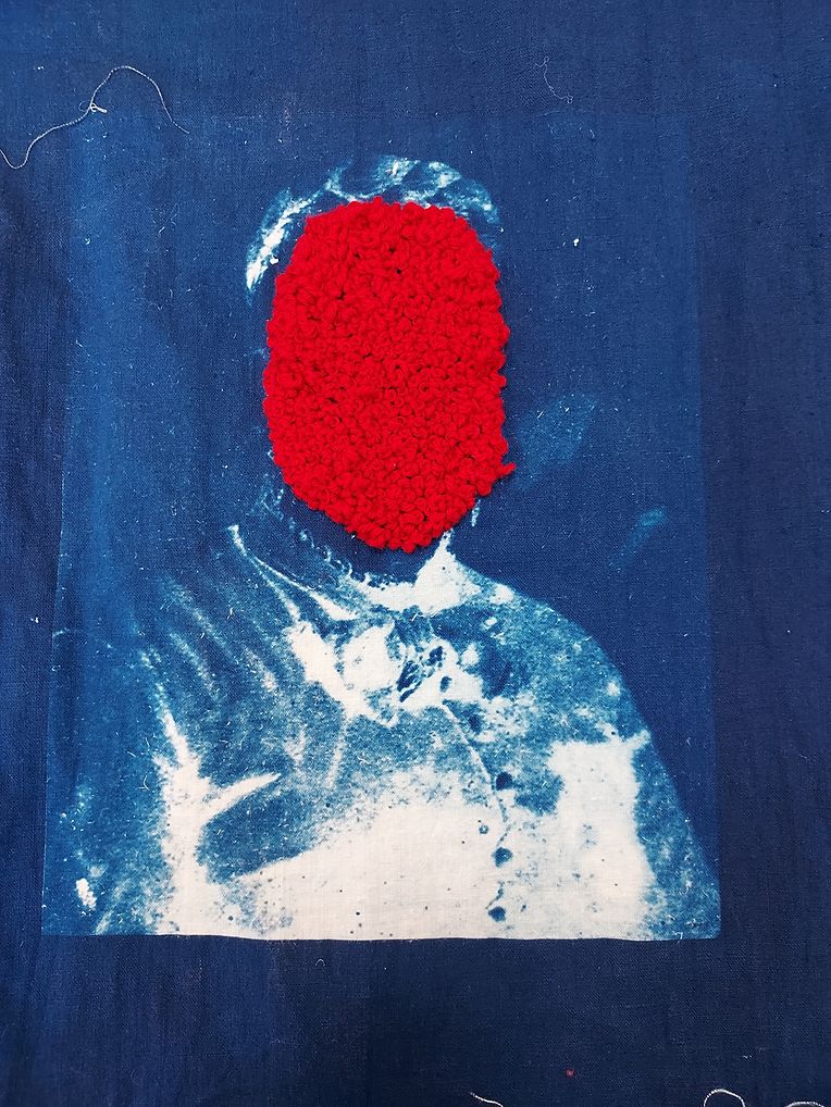 La série actuelle (Taking Roots) est une collaboration entre l’artiste et le photographe Gery Oth, travaillant la broderie sur des photos développées en technique Cyanotype.