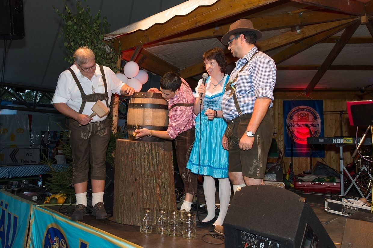 E puer Andréck vum éischte "Fassanstich" vum Beforter Oktoberfest.
