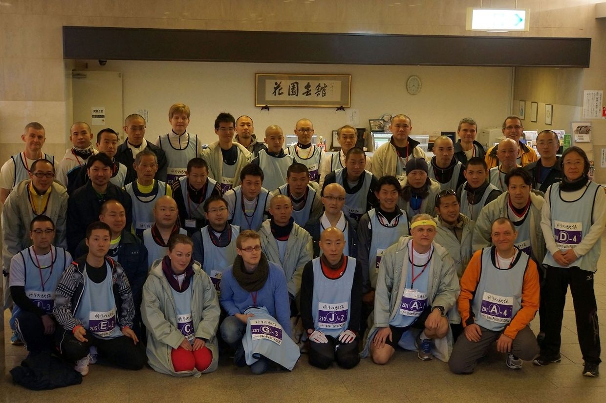 Nachdem im letzten Jahr japanische buddhistische Mönche in Luxemburg am 5. interreligiösen Lauf "InterFaith - Run for a United World" im Rahmen des ING Night Marathon teilnahmen, folgte im Februar 2014 eine InterFaith-Gruppe unter Leitung von Ingo Hanke der Einladung zum ersten InterFaith-Lauf in Japan und nahm am Kyoto-Marathon teil. Eine Woche vielfältiger neuer Eindrücke wartete dort auf die Läuferinnen und Läufer. Neben der religionsgeschichtlich wichtigen Millionenstadt Kyoto standen auch Koyasan (http://de.wikipedia.org/wiki/K%C5%8Dya-san) und Nara (frühere Hauptstadt Japans) auf dem Besuchsprogramm. Gewohnt, gegessen und gebadet wurde nach japanischer Tradition.