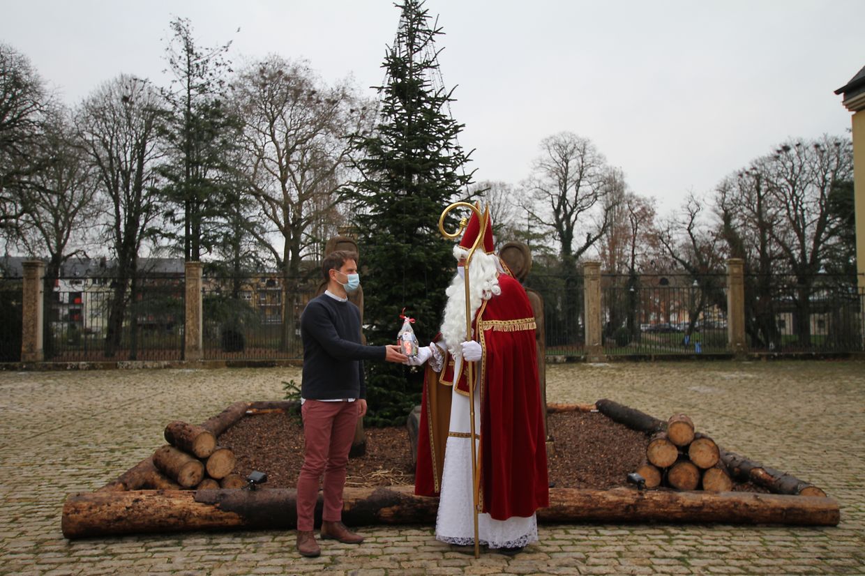 Wéinst der aktueller Situatioun huet seng Visitt missten un déi aktuell sanitär Mesuren ugepasst ginn. De Kleesche selwer ass mam gudde Beispill virgaangen an hat seng Mask un. Iert en sech dann op den Tour duerch d’Schoulen gemaach huet, ass hien vum Buergermeeschter Laurent Zeimet op der Gemeng begréisst ginn.