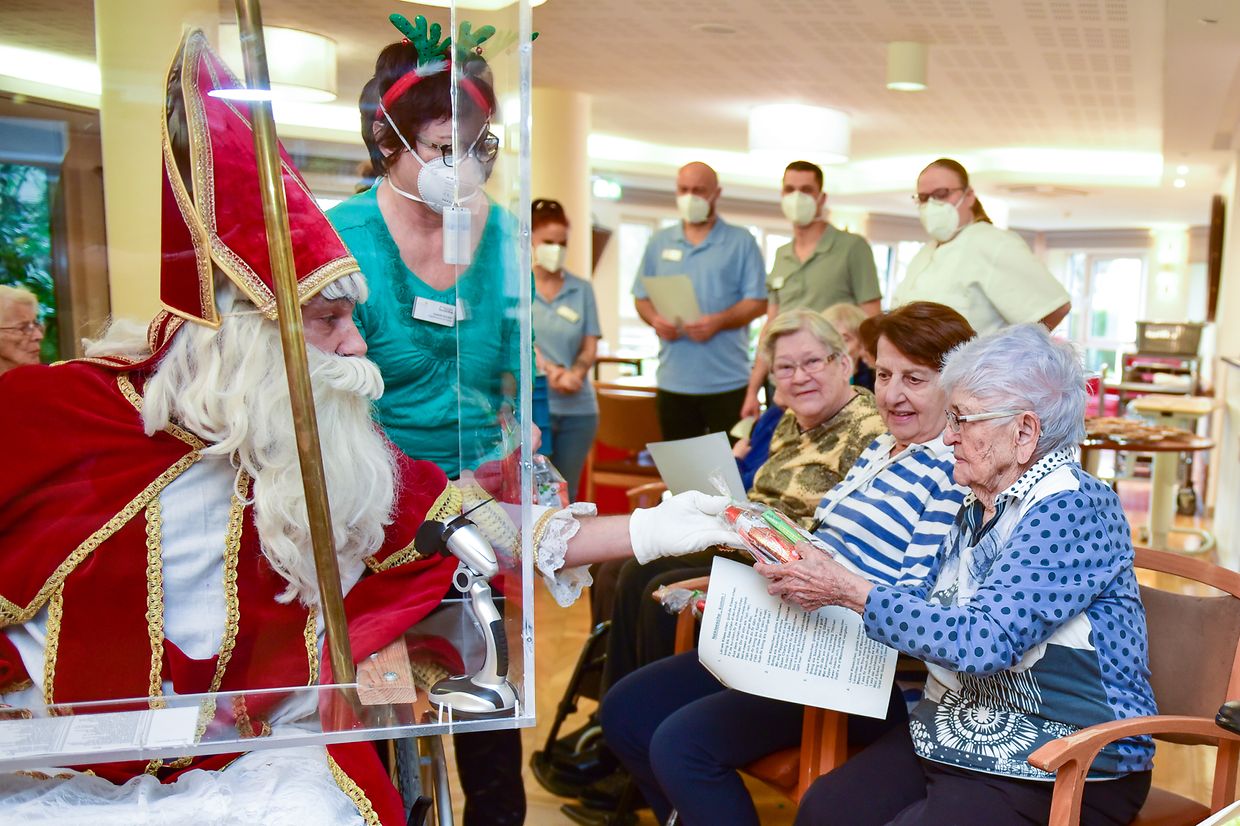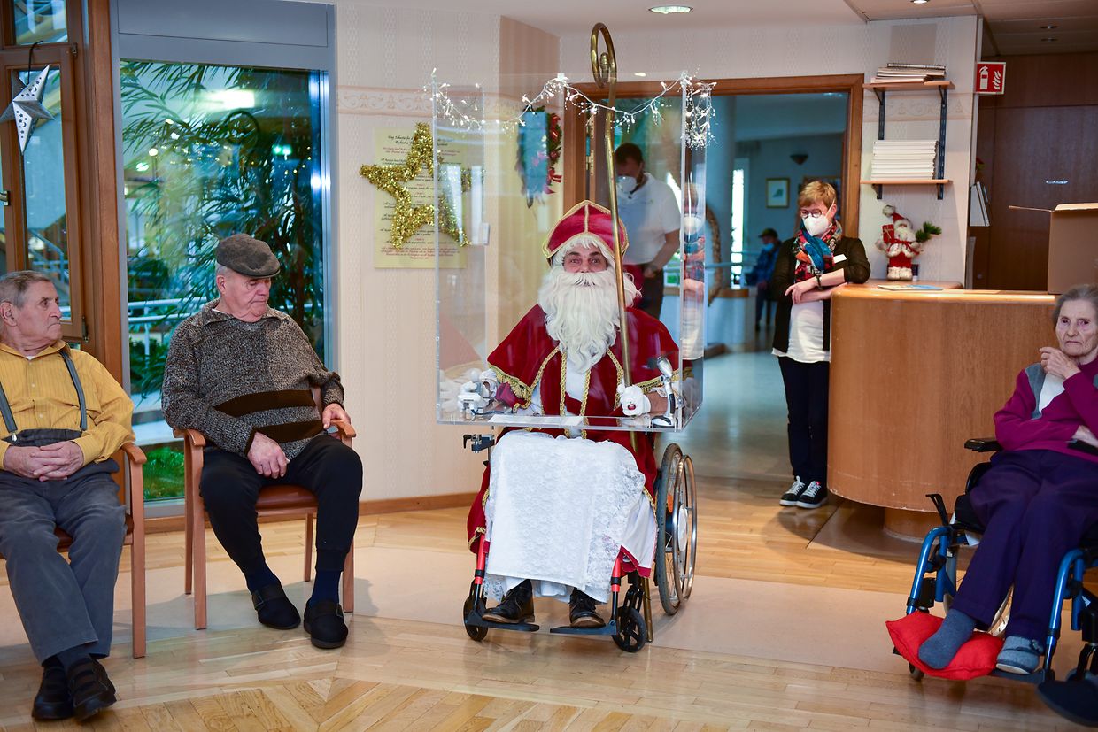 De Kleeschen huet dëst Joer misse kreativ sinn. An der Residence pour personnes âgées an de wisen huet e säi Covid-Mobil eraus geholl, fir de Bewunner eng maximal Sécherheet ze garantéieren an hinne gläichzäiteg e Laachen an d‘Gesicht ze zauberen.
