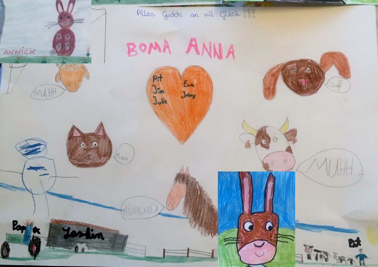 Betzdorf fir eis Urboma Anna Pierre Hoffmann-L'Ortye Published on Tuesday, 31 March, 2020 at 11:38 6832 Betzdorf, Luxemburg Si feiert den 31. Mäerz hir 89 Joer. D’Enkelkanner vu Betzder, d’Annick, d’Julie, de Pit an de Jim wënschen hirer Urboma all Gutts an dass si geschwënn erëm gesond ass. This post is part of mywort mission: Eine Zeichnung für die Großeltern Report inappropriate content More news by Pierre Hoffmann-L'Ortye > Buergbrennen in Dreiborn 1984 20/02/18 Wormeldange