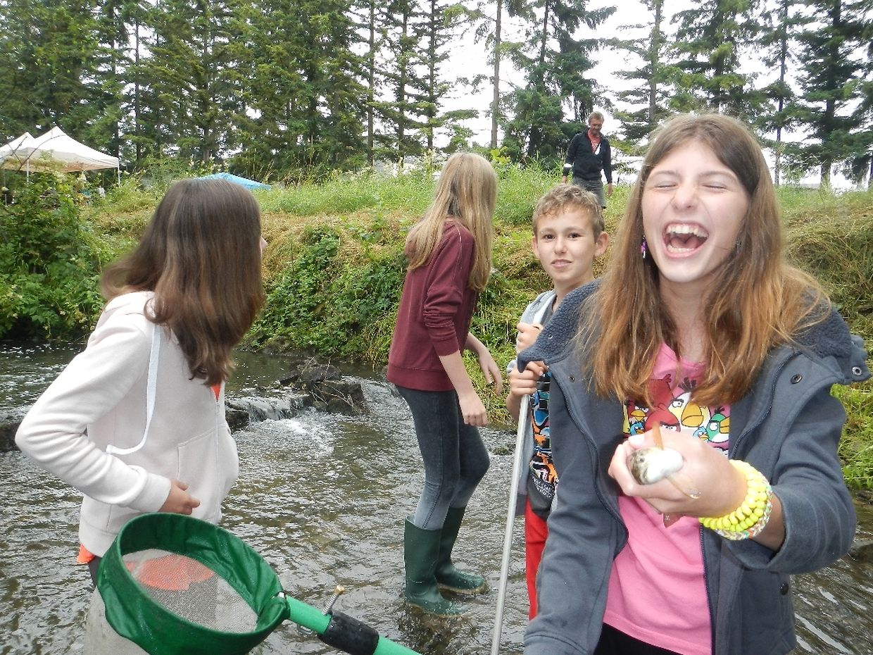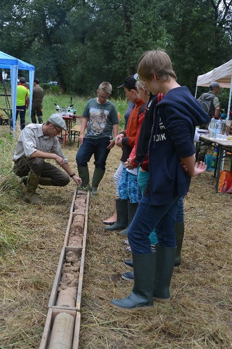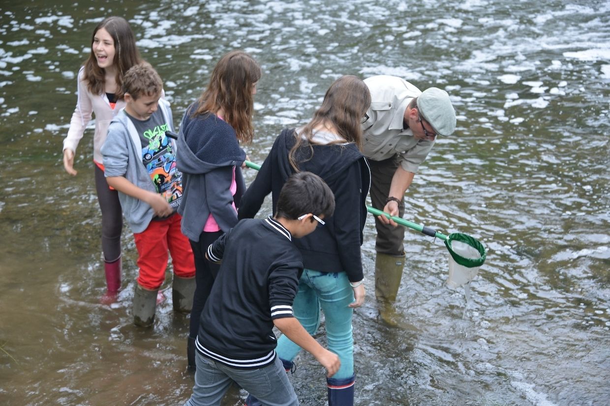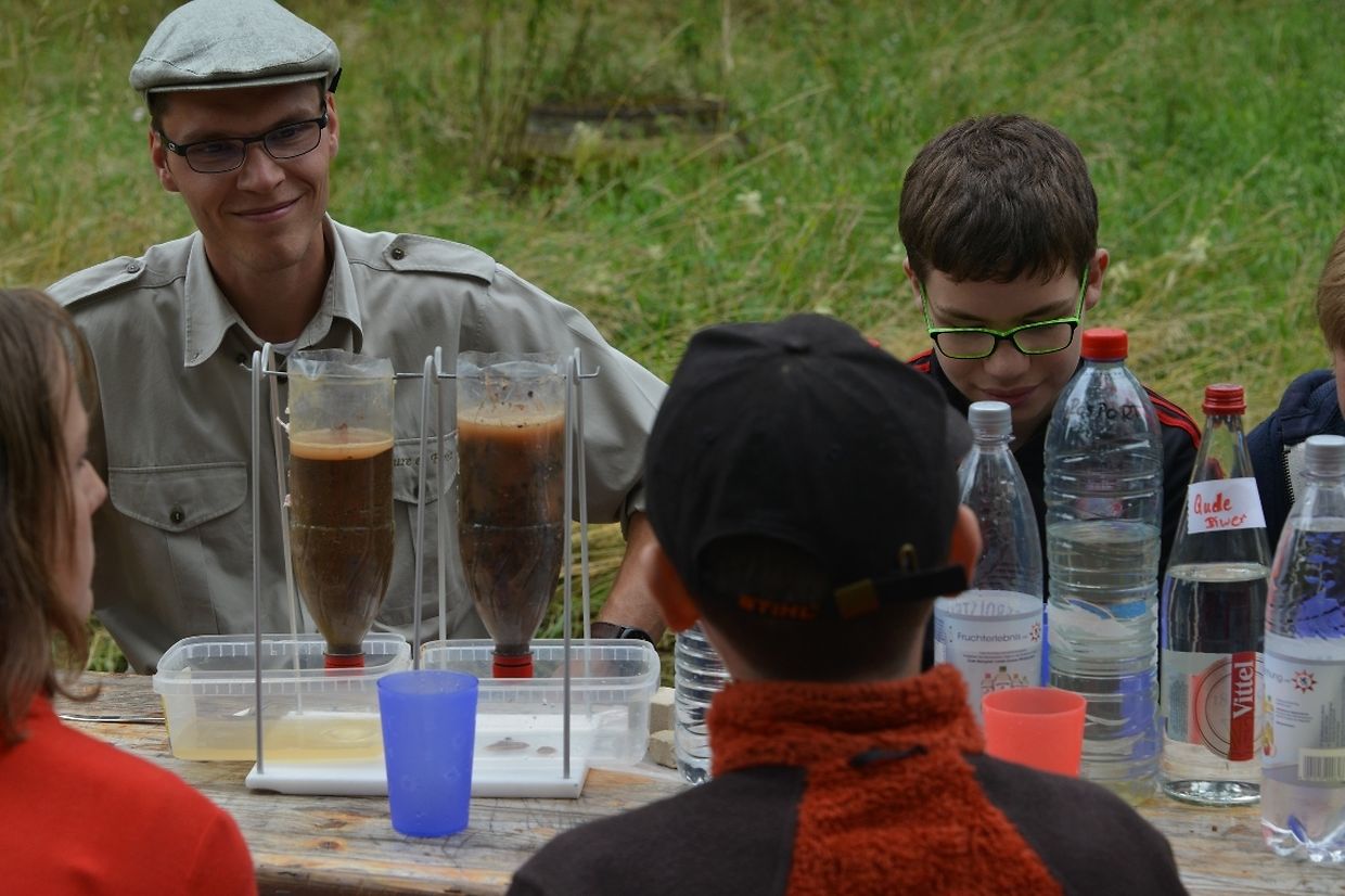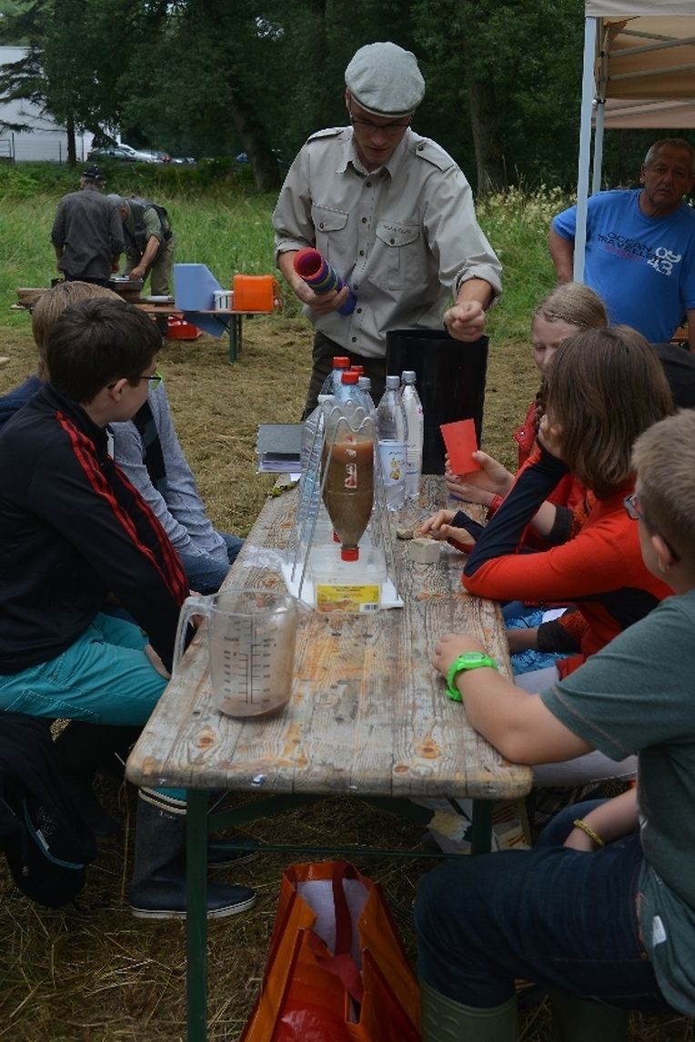 Revierförster Luc Roeder hatte eine Erdbohrung aus der Gemeinde mitgebracht und erklärte anhand der Bodenschichten und einiger Experimente, den Weg des Wassers. Mit Netzen wurde anschließend in der Syr nach Insekten, kleinen Fischen und Krebsen gesucht, welche anschließend unter dem Mikroskop begutachtet werden konnten.