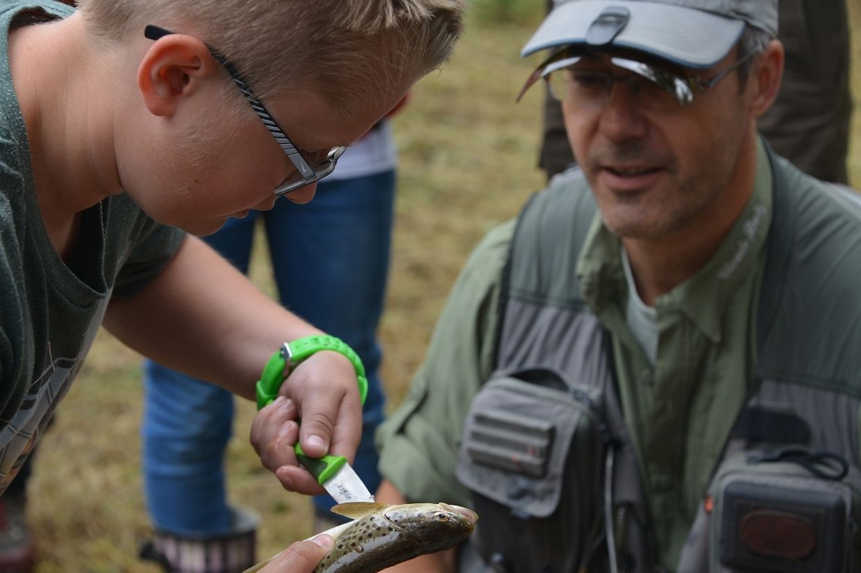Zur Mittagzeit, wurden einige selbst gefangene Forellen ausgeweidet und vor Ort geräuchert. Trotz Verzicht auf Ketchup und Mayonnaise, schien es jedem geschmeckt zu haben, wer hätte das gedacht. Zu schnell verging der Tag und viele Kinder wollten gleich am nächsten Tag wieder angeln, wie gut, dass jetzt Schulferien sind…