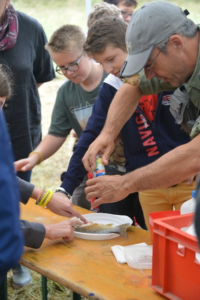 Am letzten Schultag vor den Ferien und bei allerbestem Angelwetter konnten die 31 Kinder dank den Pächtern in der Syr in Wecker fischen. Unter der jeweils persönlichen Anleitung eines Mitglieds aus dem Angelverein gelang so mancher Fang. Bei Claude Strotz, gab es Erklärungen zur Syr und zu den einheimischen Fischen. Das so erlangte Wissen, wurde in einem Quiz abgefragt und alle Kinder erhielten eine praktifizierte Fischkarte, welche von der FLPS zur Verfügung gestellt wurde.