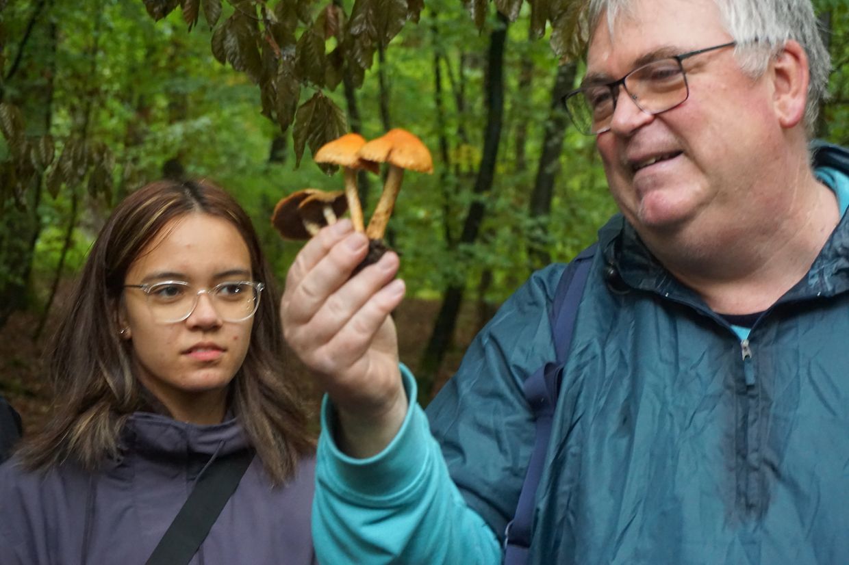 Ënner der fachlecher Leedung vum Här Fernand Schiltz kruten d‘Leit ënner dem Moto: „Kucken a Sammelen“, d’Roll vun de Pilzen am Naturhaushalt méi no bruecht.