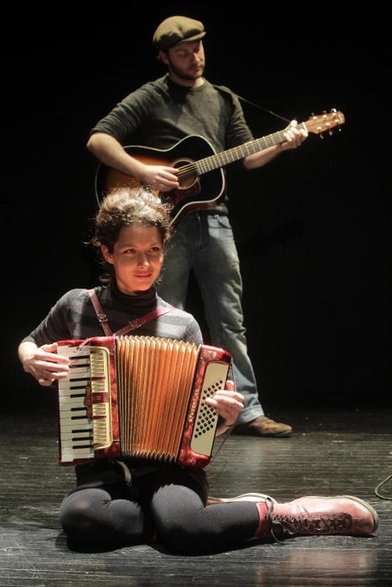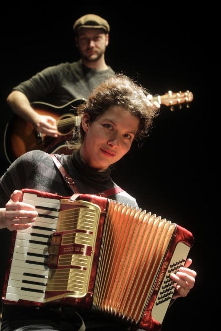 Genauso phantasievoll wie abwechslungsreich arrangierten die beiden Künstler hierbei die Musik, und ließen ebenfalls die Stille gebührend klingen. Sie wechselten nicht nur fliegend Gemütslagen, sondern auch das Instrument – Gitarre und Akkordeon, die passenderweise die dementsprechenden Assoziationen weckten –, um die poetisch-verspielten, dann wiederum zerrissen-verletzten Texte zu begleiten. Stimmlich gestanden konnte sich Hollwege durchaus erlauben, gar ins Expressionistische vorzudringen – faszinierend dabei, wie nicht nur der Tonfall, sondern die gesamte Körpersprache und Mimik mit dem Sprachwechsel aus der charismatischen Interpretin, die bestechend Kraft und Zerbrechlichkeit vereint, eine völlig andere Person zu machen schien.