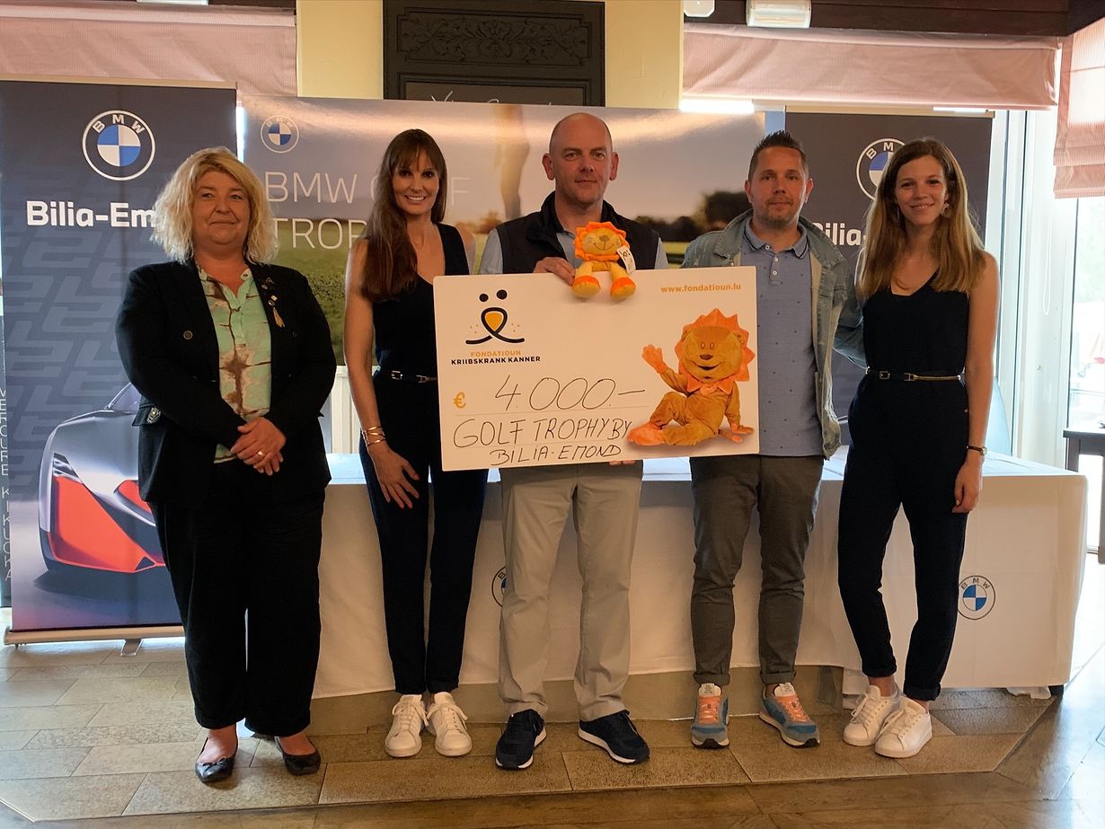 Le Golf Trophy by Bilia-Emond, tournoi organisé conjointement par BMW Group Belux et le concessionnaire BMW-MINI, a permis de remettre un chèque de 4.000 € à la fondation luxembourgeoise Kriibskrank Kanner en présence de ses donateurs amateurs de golf.